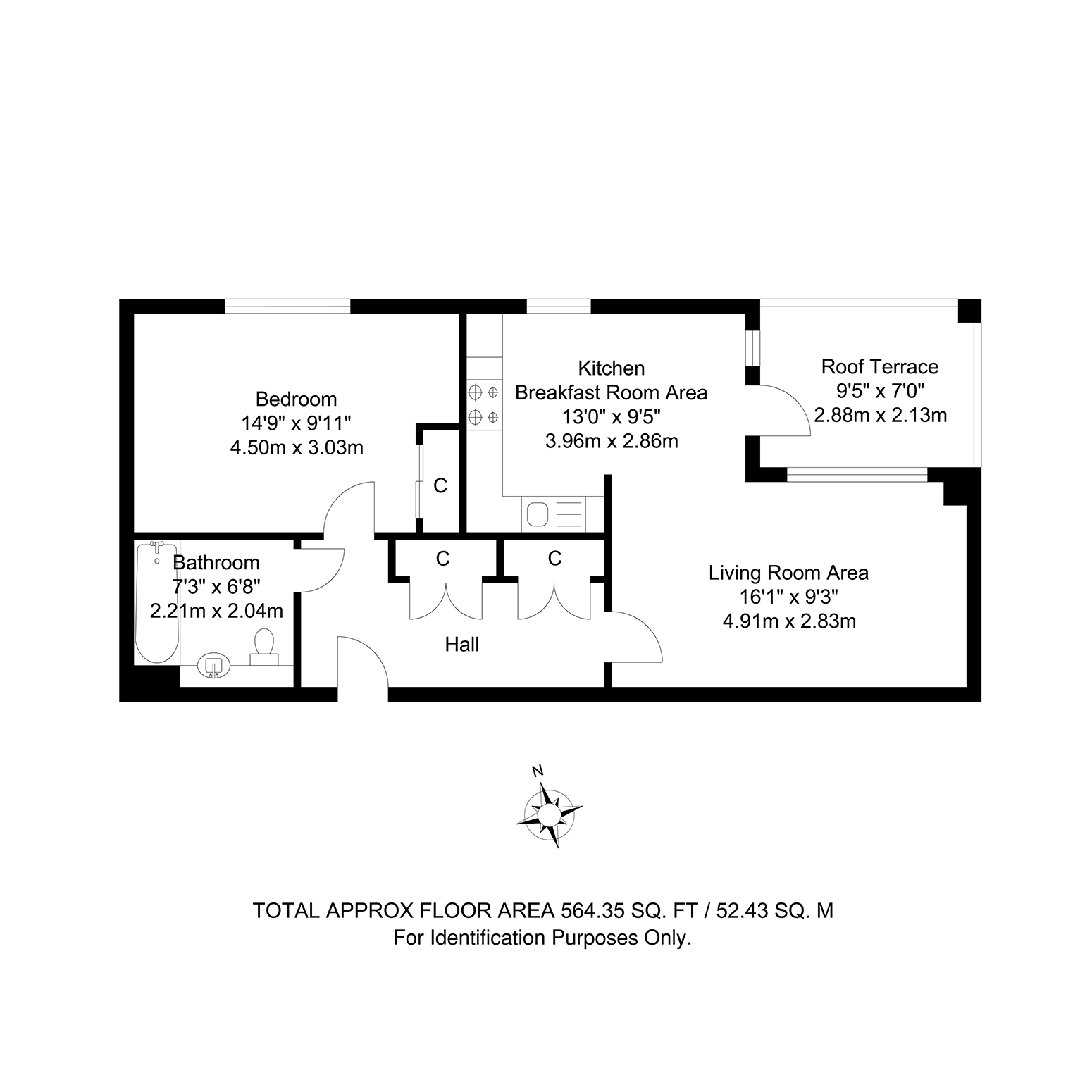 2.88m x 2.13m (9' 5" x 7' 0")