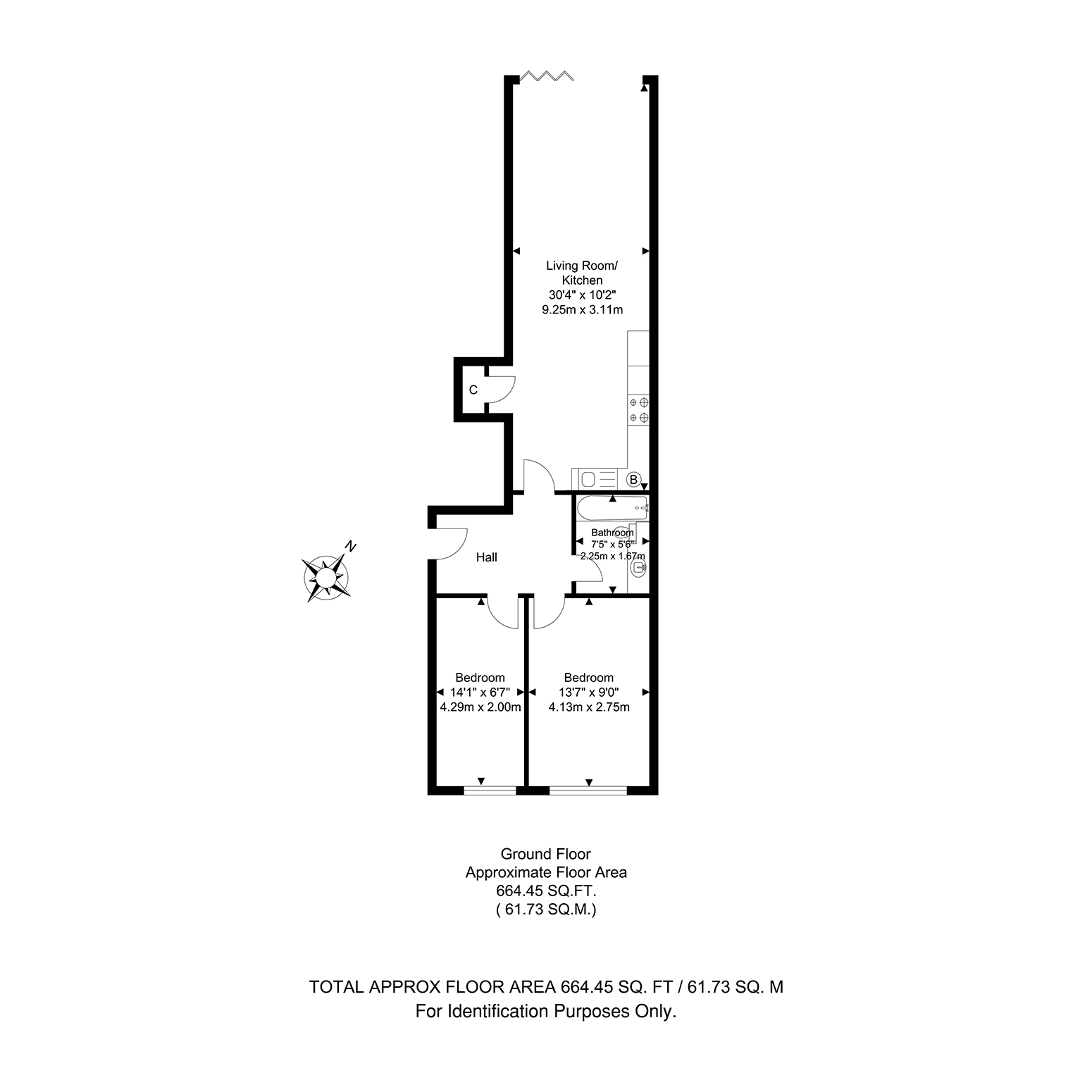 Further benefits include double glazing, gas central heating, and communal garden. Total Internal Area approx: 664.45 sq ft (61.73 sq m). EPC Rating B83. CHAIN FREE!