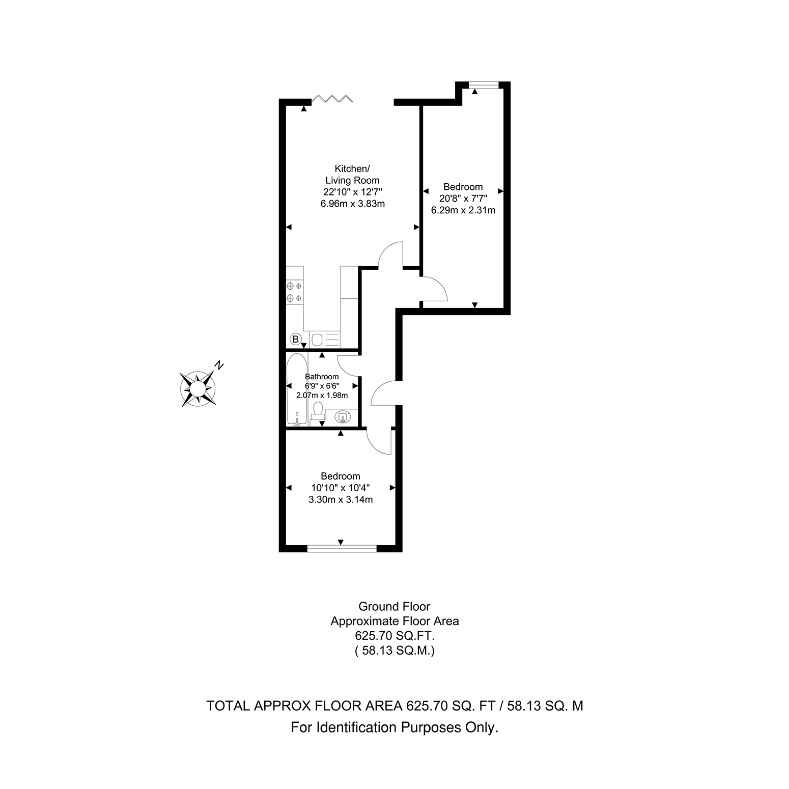 Further benefits include double glazing, gas central heating, and communal garden. Total Internal Area approx: 625.70 sq ft (58.13 sq m). EPC Rating B83. CHAIN FREE!