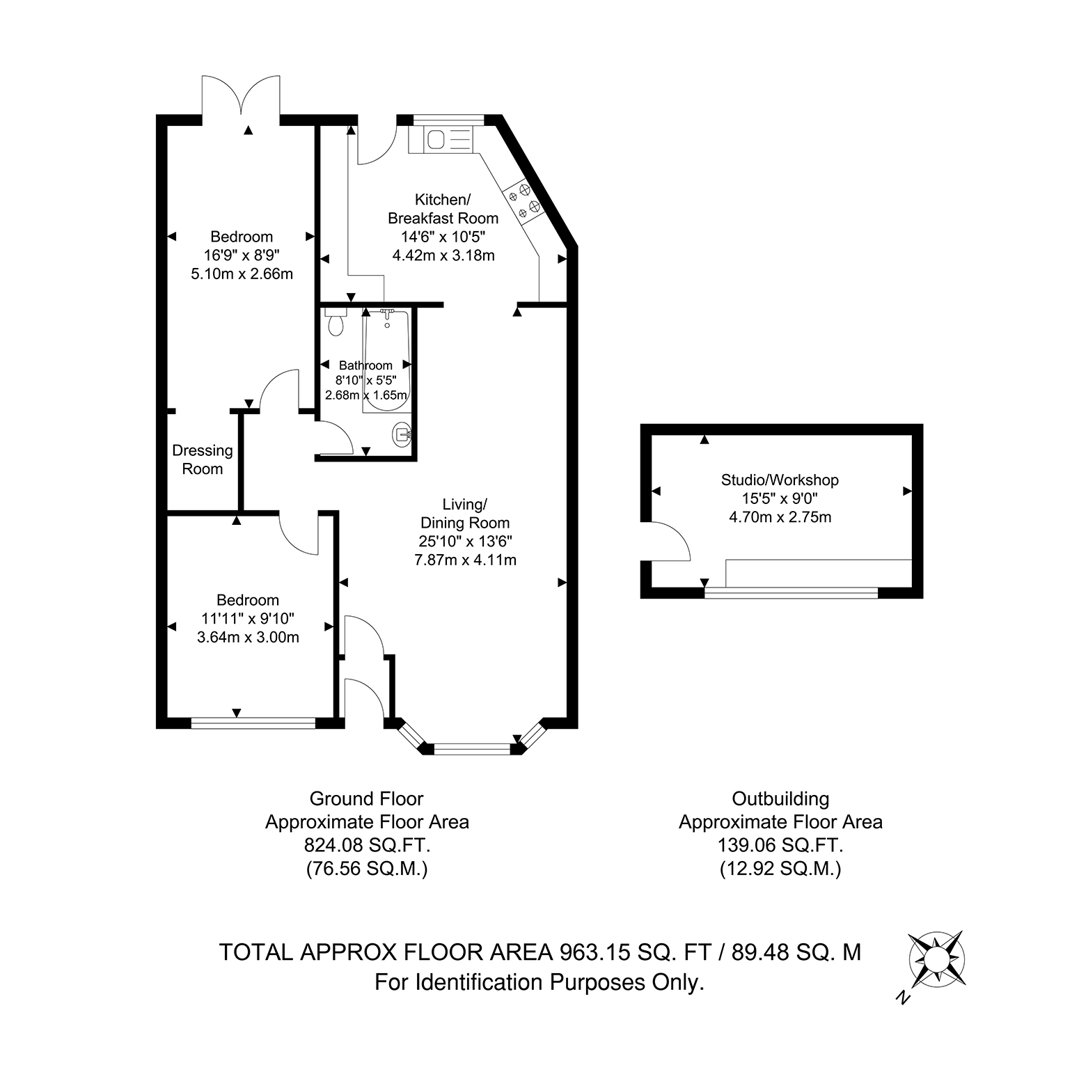 Total Internal Area approx: 963.15 sq ft (89.48 sq m). CHAIN FREE.