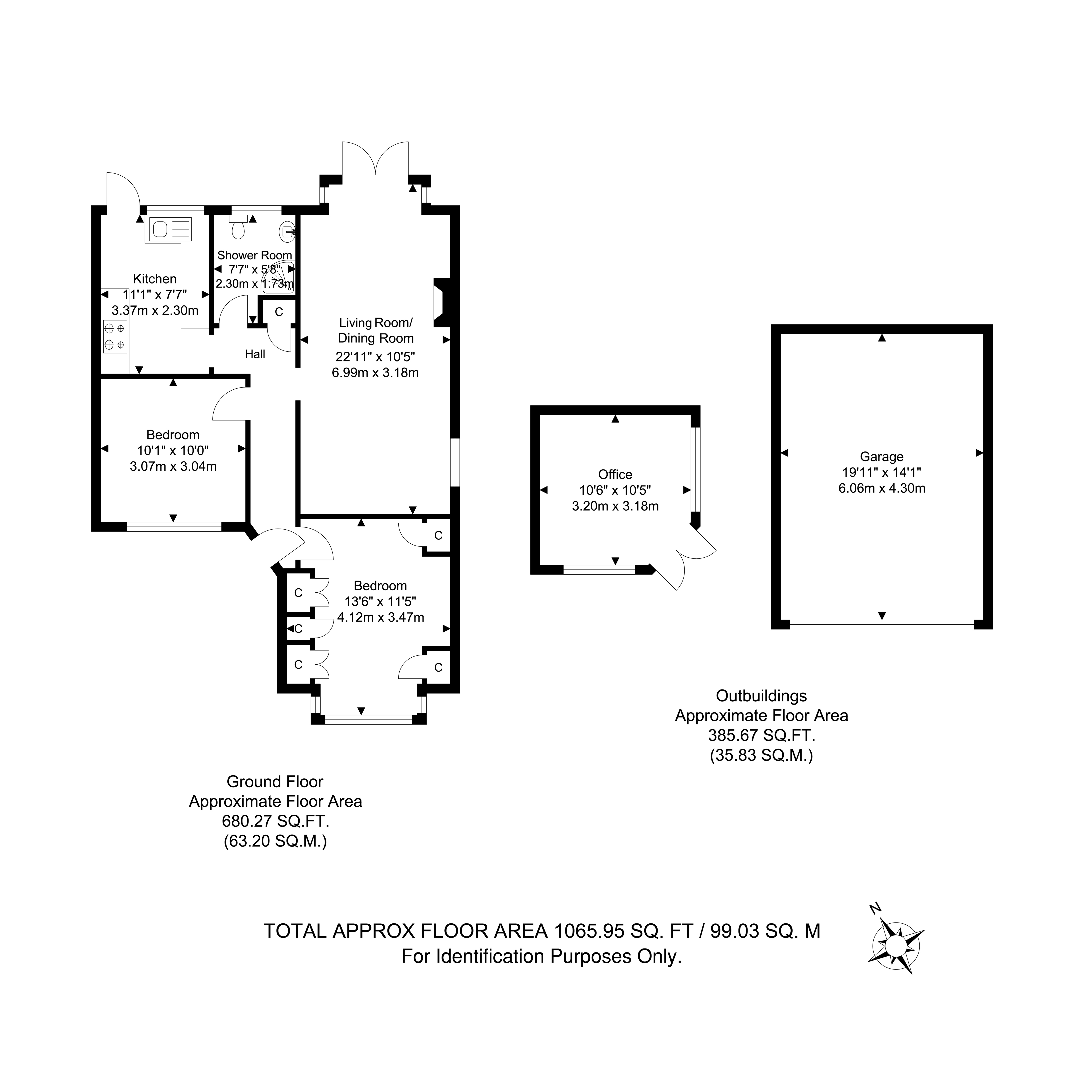 Total Internal Area approx: 1,065.95 sq ft (99.03 sq m). EPC Rating D60