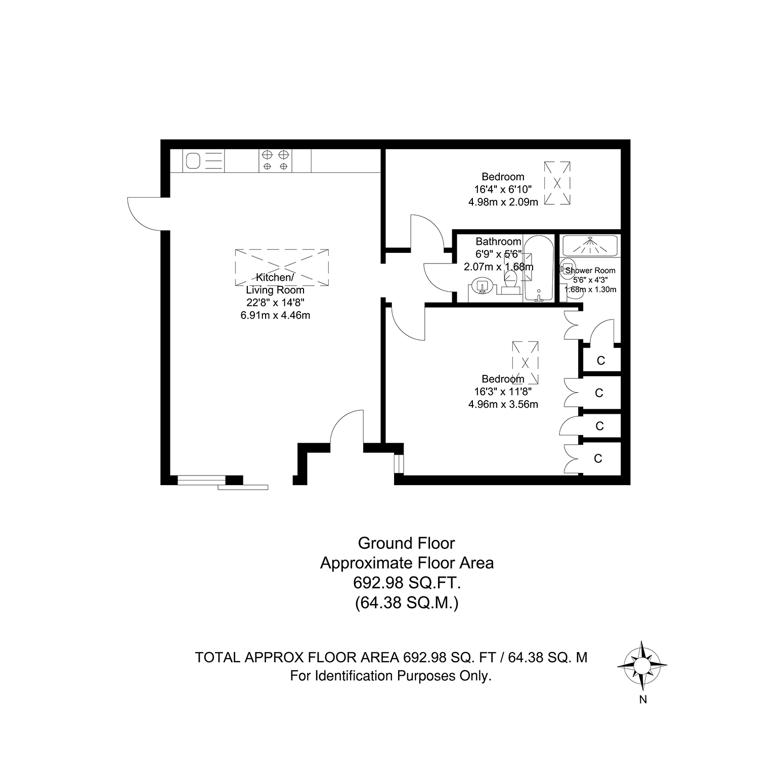 Total Internal Area approx: 692.98 sq ft (64.38 sq m)