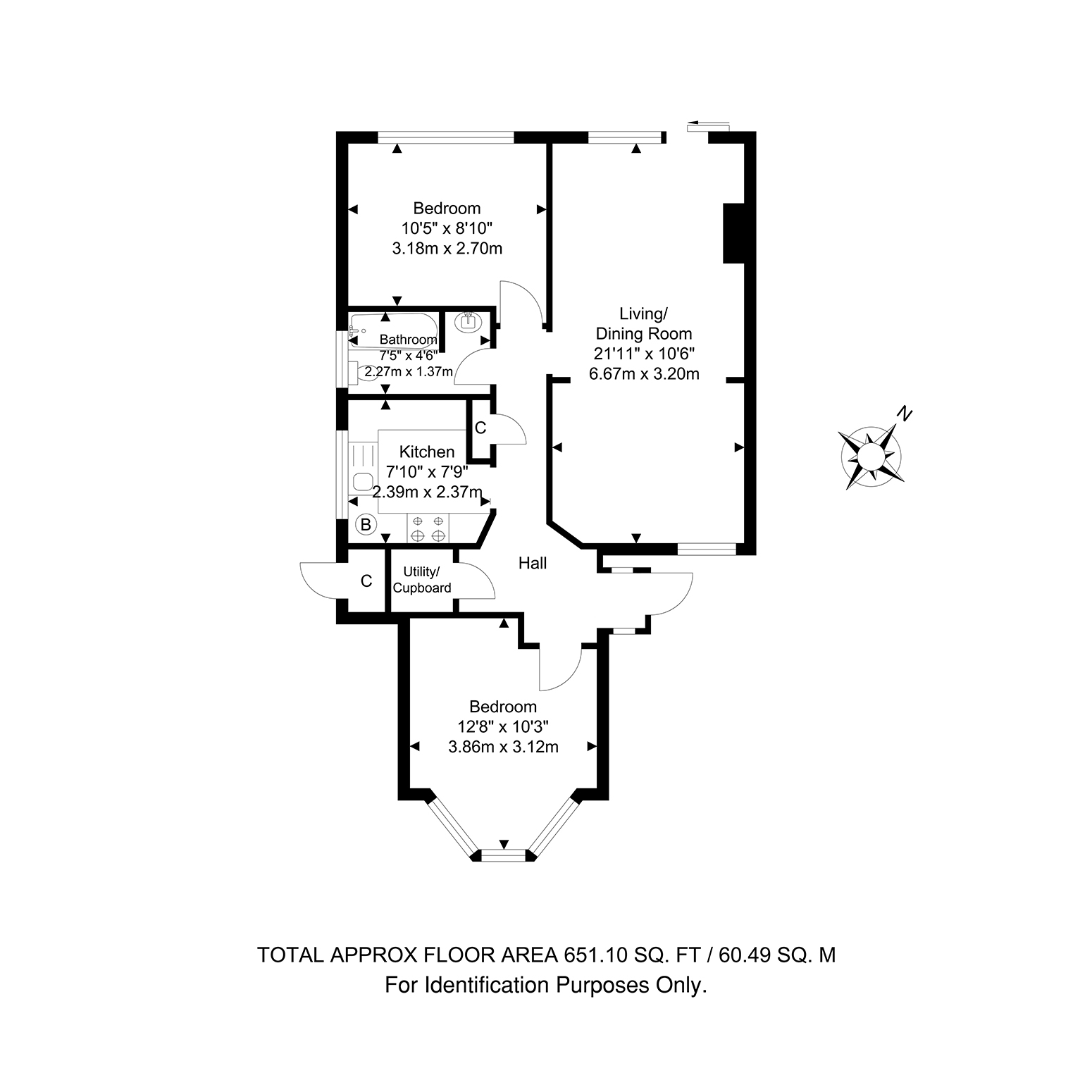 Total Internal Area approx: 651.10 sq ft (60.49 sq m)