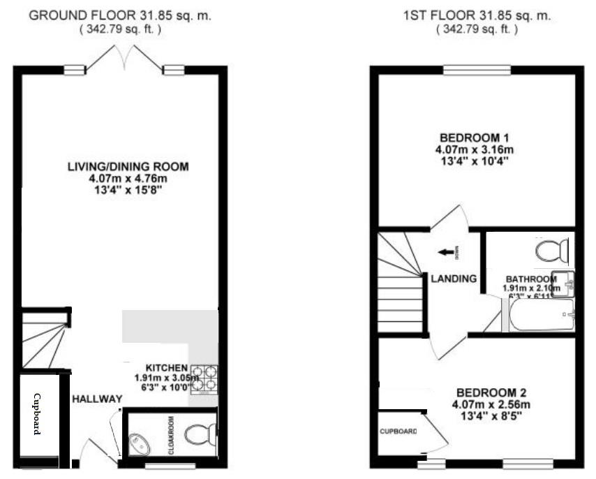 Inside, it is well-presented with light and neutral décor throughout and feels warm and welcoming. The entrance hallway has a nice laminate flooring with a convenient ground floor cloakroom to the side, containing a WC and corner basin. There is also a large cupboard which has water plumbing and electric. Downstairs is open plan living accommodation which is spacious, light and airy with a back door leading to the rear garden.