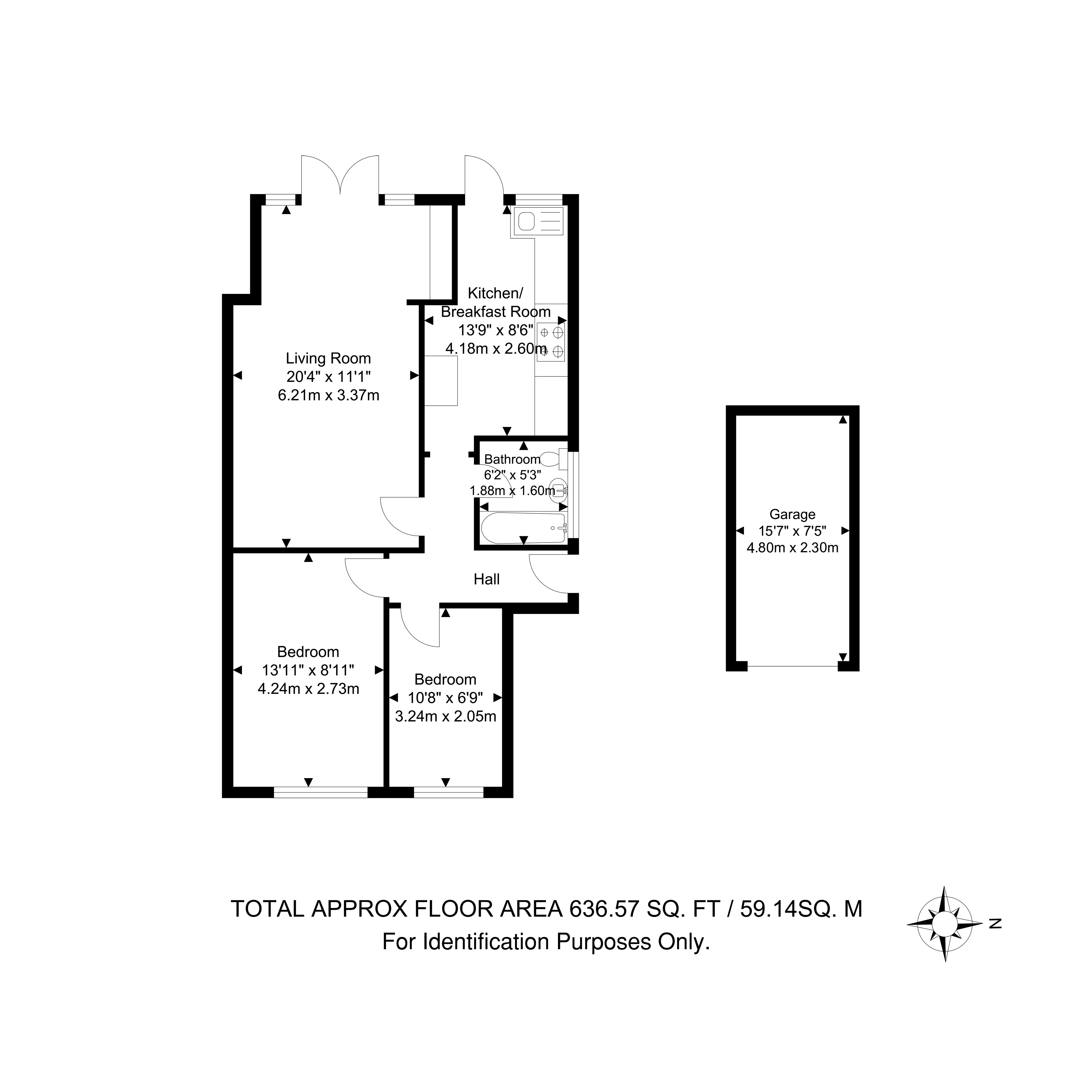 Total Internal Area approx: 636.57 sq ft (59.14 sq m). EPC C71