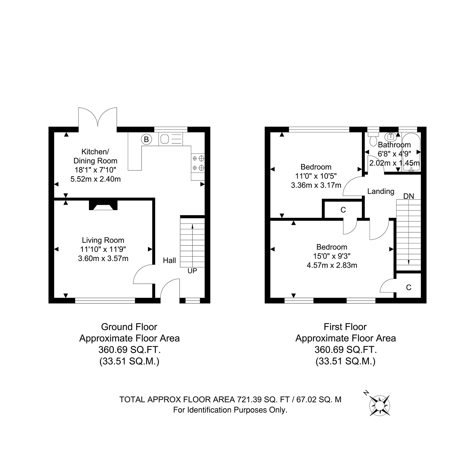 Total Internal Area approx: 721.39 sq ft (67.02sq m)