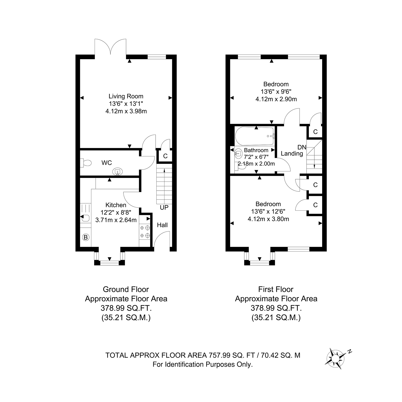 Total Internal Area approx: 757.99 sq ft (70.42sq m).