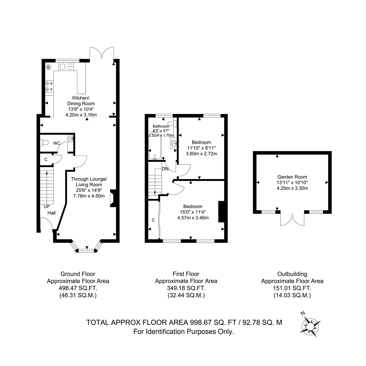 Total Internal Area approx: 998.67 sq ft (92.78 sq m).