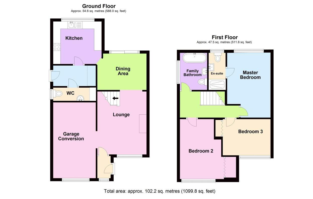 Inside, the house features a spacious living room, dining room and additional reception room as well as a well-equipped kitchen with contemporary fittings and downstairs cloakroom. The first floor comprises three double bedrooms, one of which benefits from an en-suite shower room.