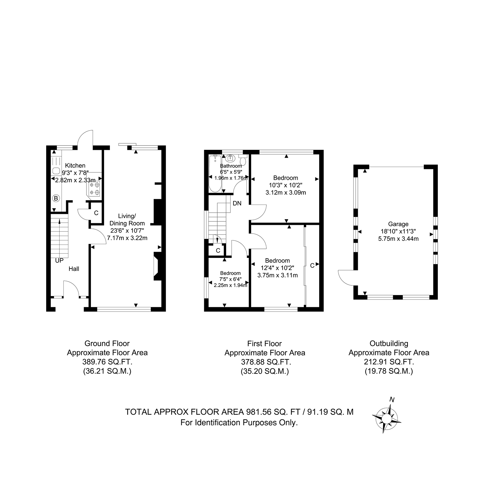Total Internal Area approx: 981.56 sq ft (91.19 sq m).