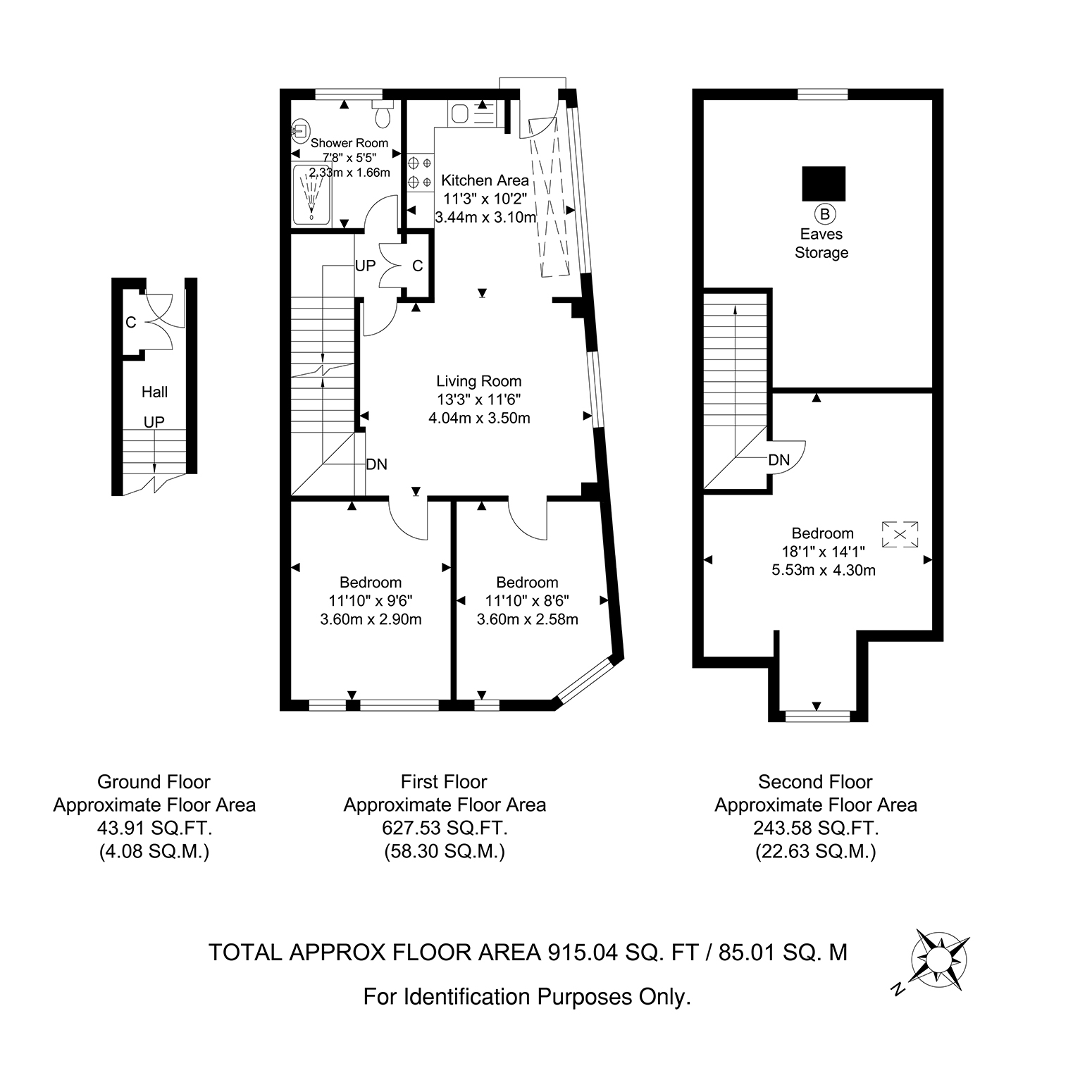 Further benefits include double glazing, gas central heating, and off street parking. Total Internal Area approx: 915.04 sq ft (85.01 sq m). CHAIN FREE