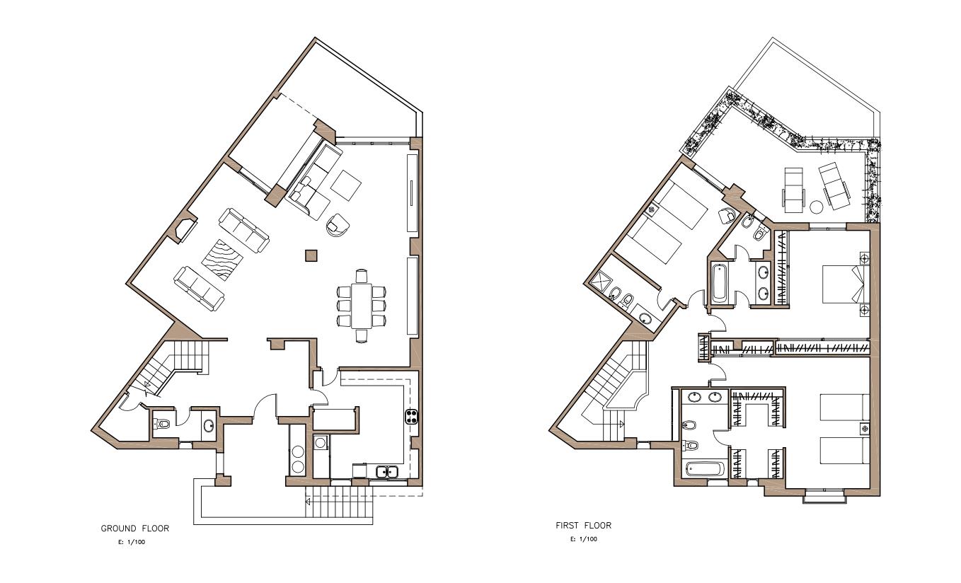 The apartment offers spacious accommodation: ample entrance hall, a double living room with TV and dining areas, sunny open terrace, fully fitted & equipped kitchen, guest toilet. There are two double guest bedrooms and a master bedroom on the upper level of the property. All three bedrooms come with built in wardrobes, en-suite bathrooms and individual thermostats for air conditioning, Two of the bedrooms have an access to uncovered terrace with breathtaking views.