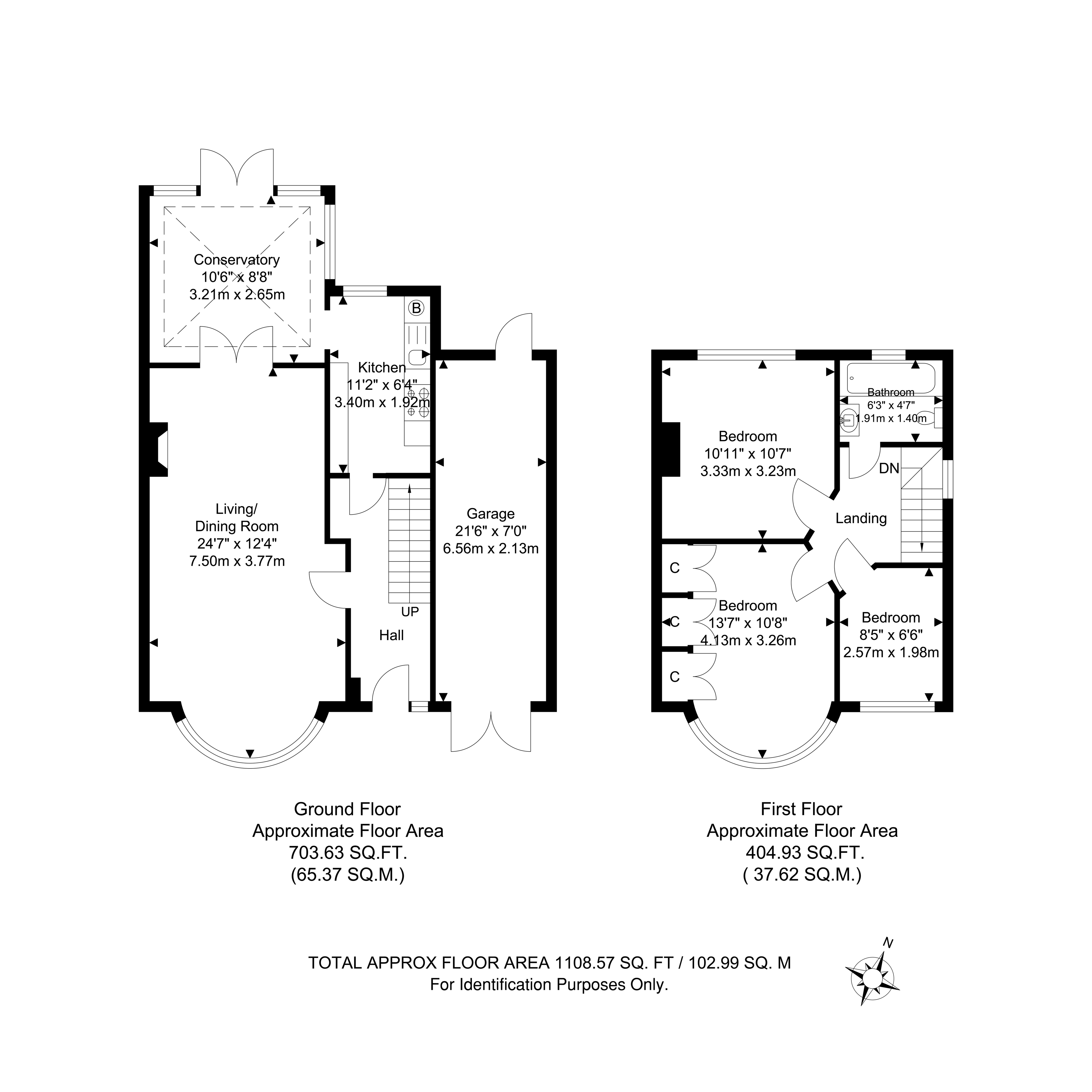 Total Internal Area approx: 1,108.57 sq ft (102.99 sq m).