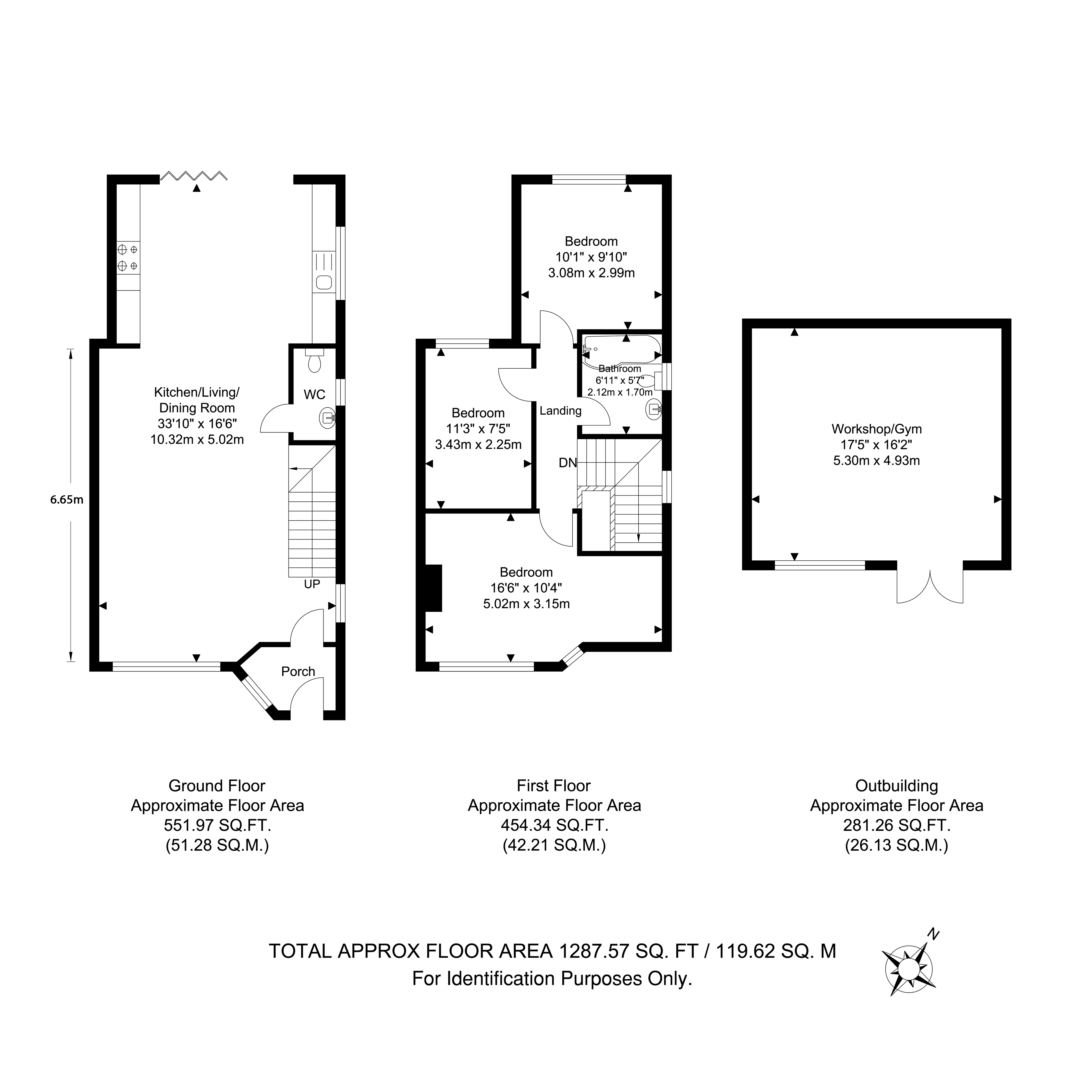 Total Internal Area approx: 1,287.57 sq ft (119.62 sq m).