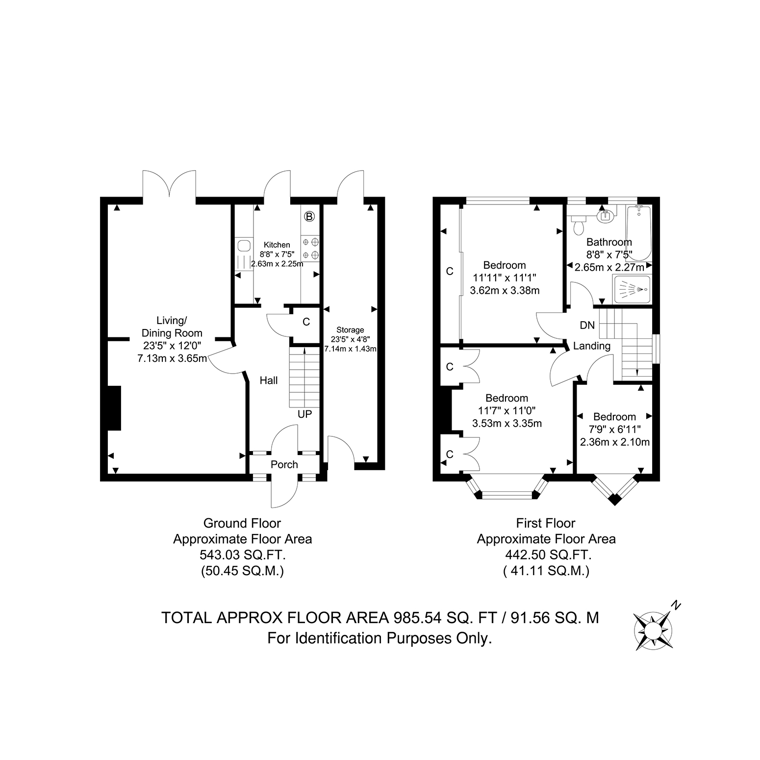 Total Internal Area approx: 985.54 sq ft (91.56 sq m).