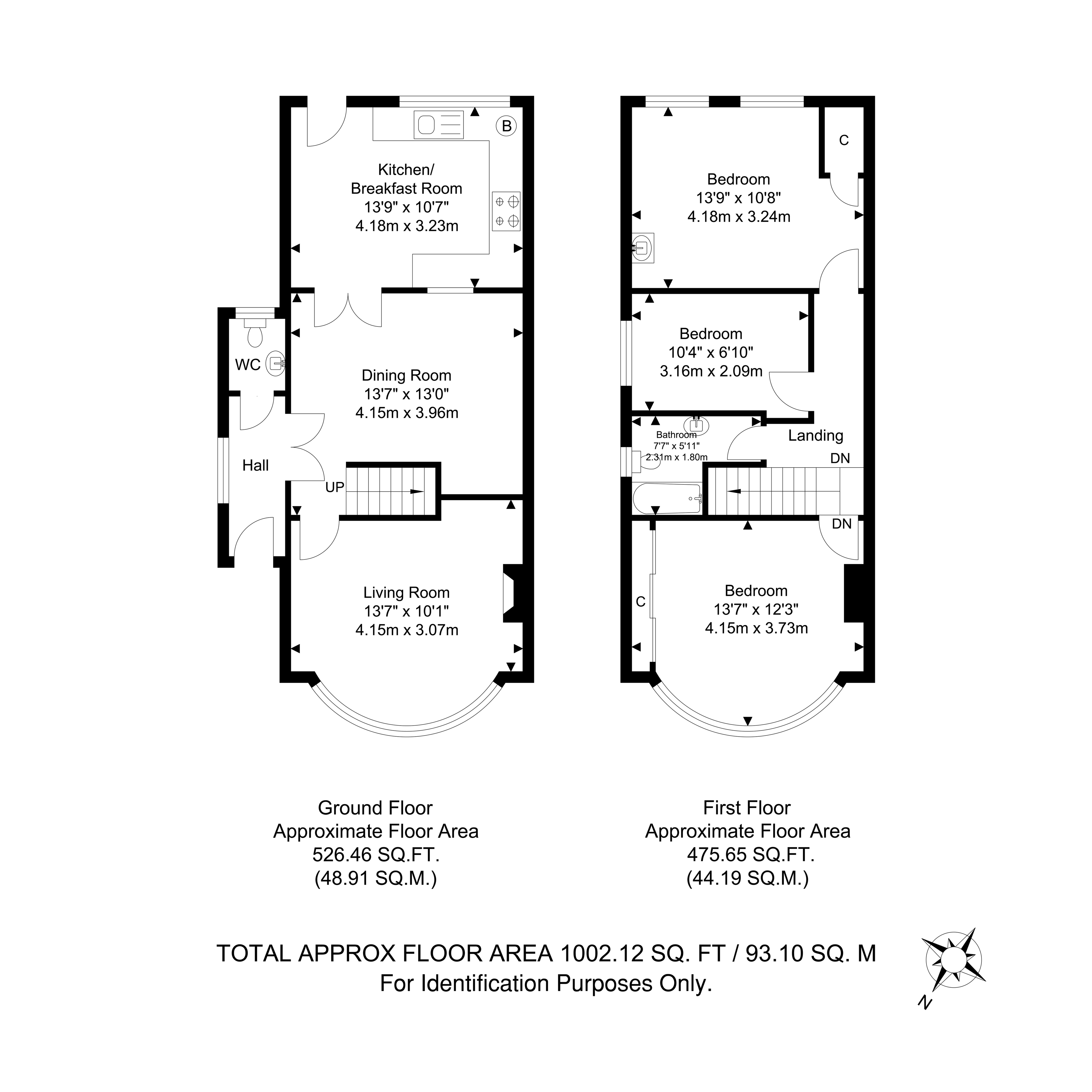 Total Internal Area approx: 1,002.12 sq ft (93.10 sq m). EPC D63