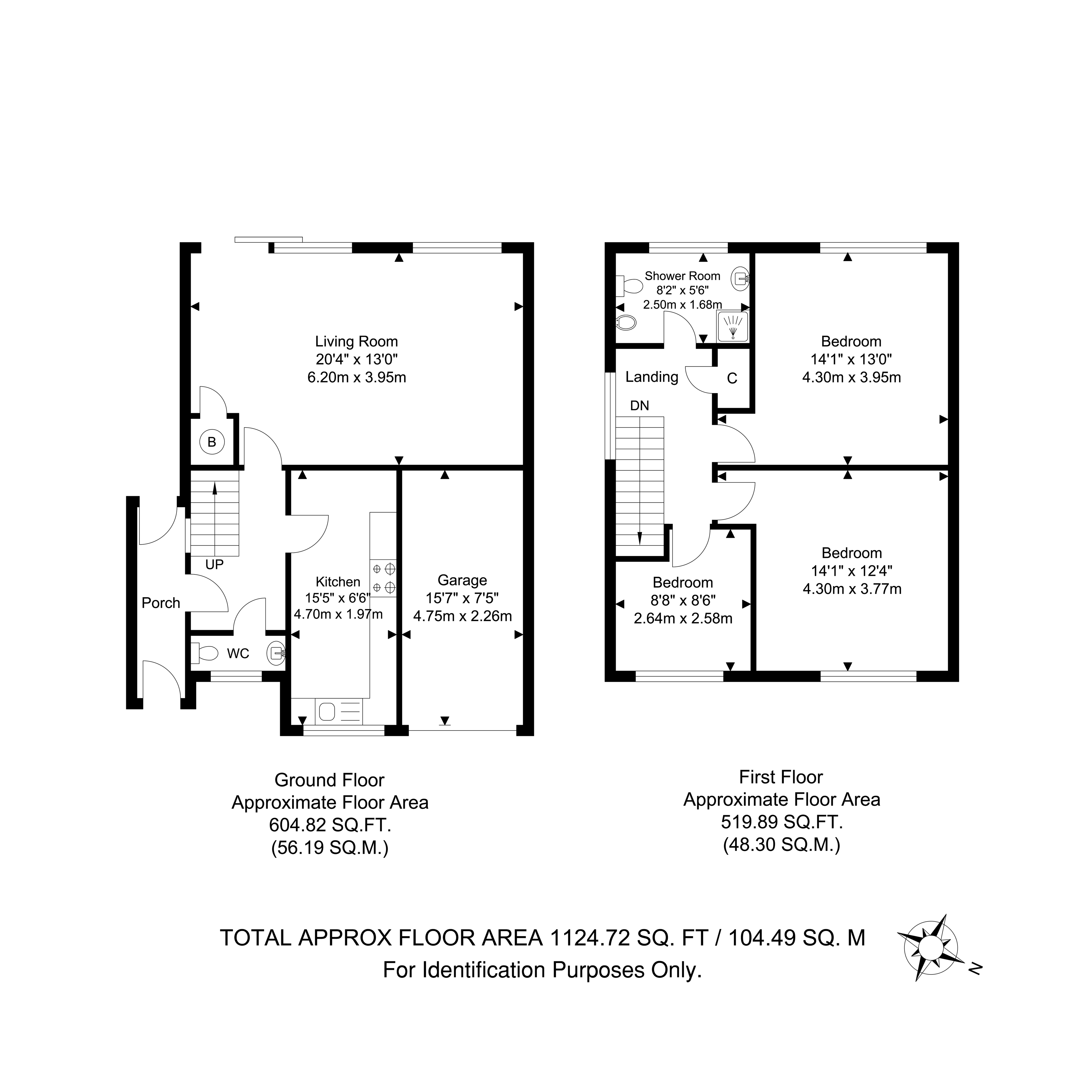 Total Internal Area approx: 1,124.72 sq ft (104.49 sq m). EPC D61