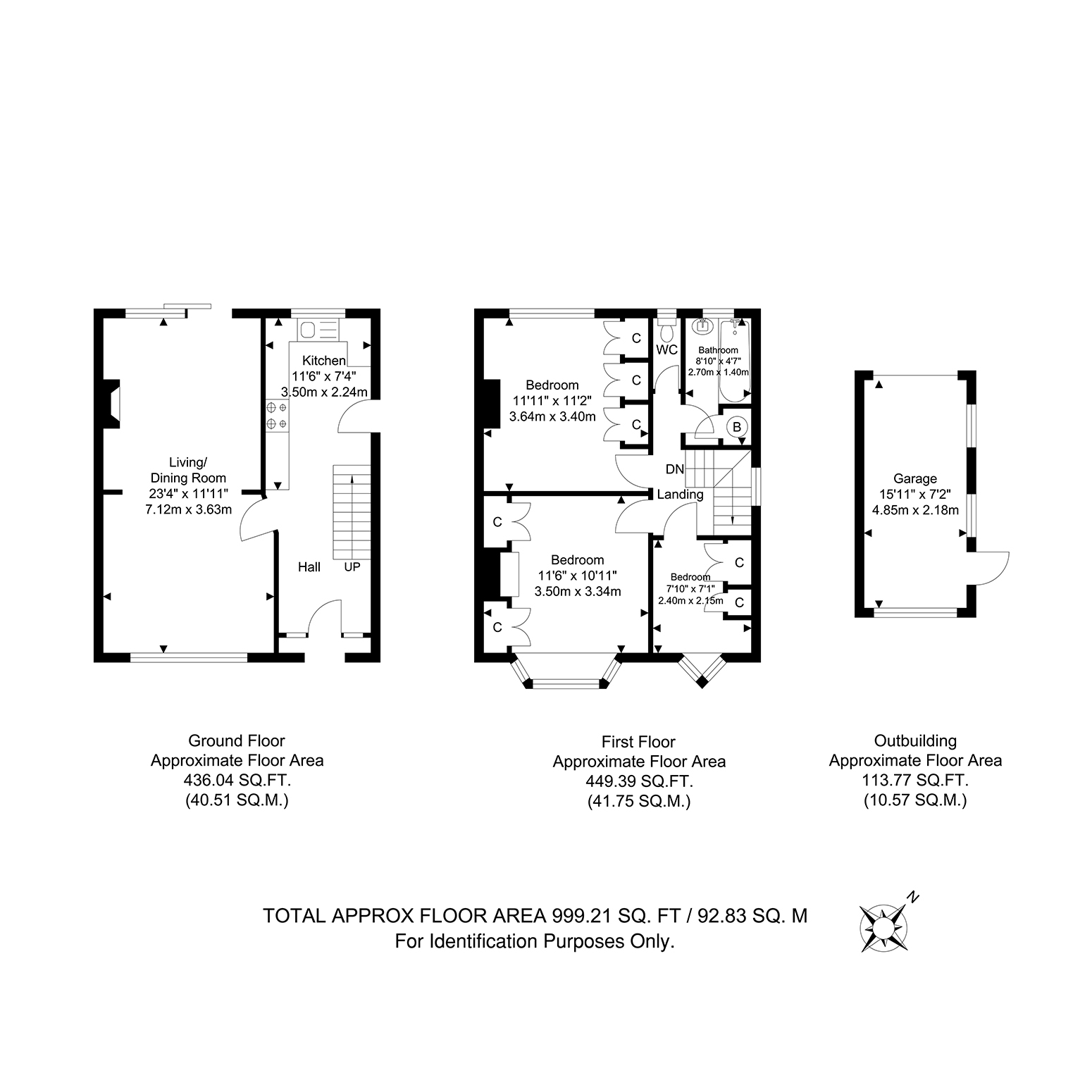 Further benefits include double glazing, gas central heating, garage, and 80ft (approx) rear garden. Total Internal Area approx: 999.21 sq ft (92.82q m).