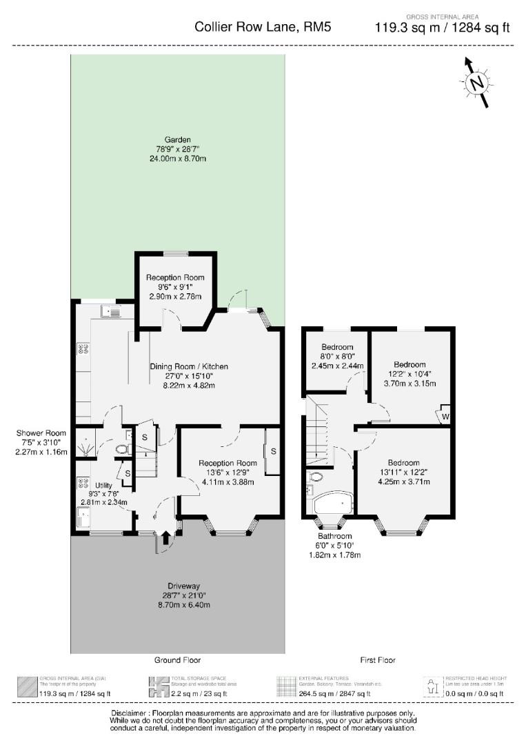 Approx. Internal Area: 119.3 sq m / 1284 sq ft