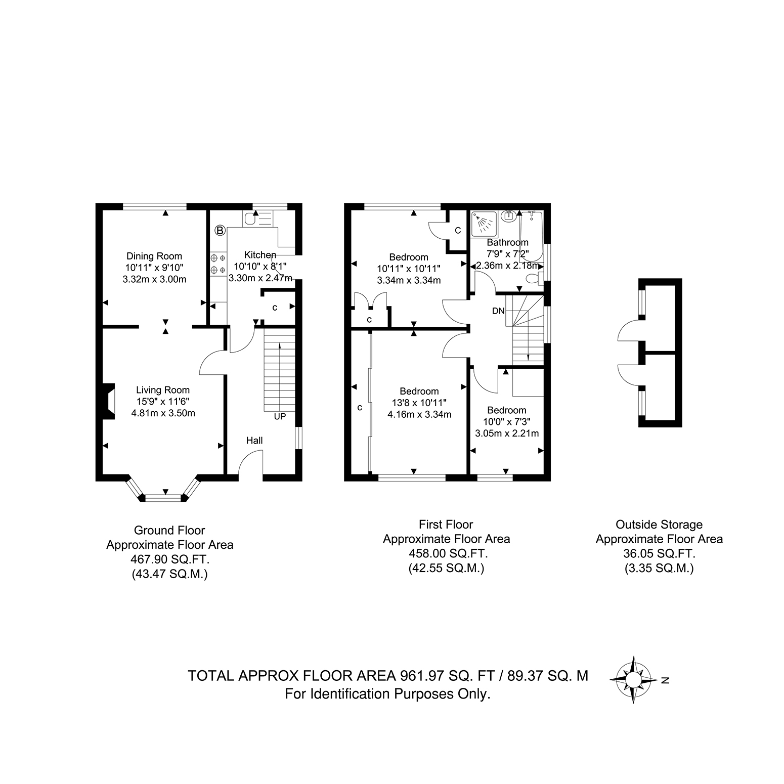 Total Internal Area approx: 961.97 sq ft (89.837 sq m).