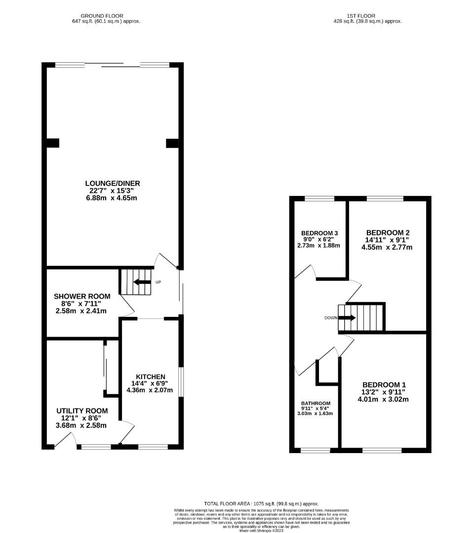 The property is thoughtfully designed, to the ground floor there is kitchen with separate utility, extended family lounge diner and a modern fitted wet room. On the first floor, you'll find two comfortable double bedrooms, providing ample space for family members. Additionally, there's a smaller third bedroom that can serve as a child's room, home office, or guest room.