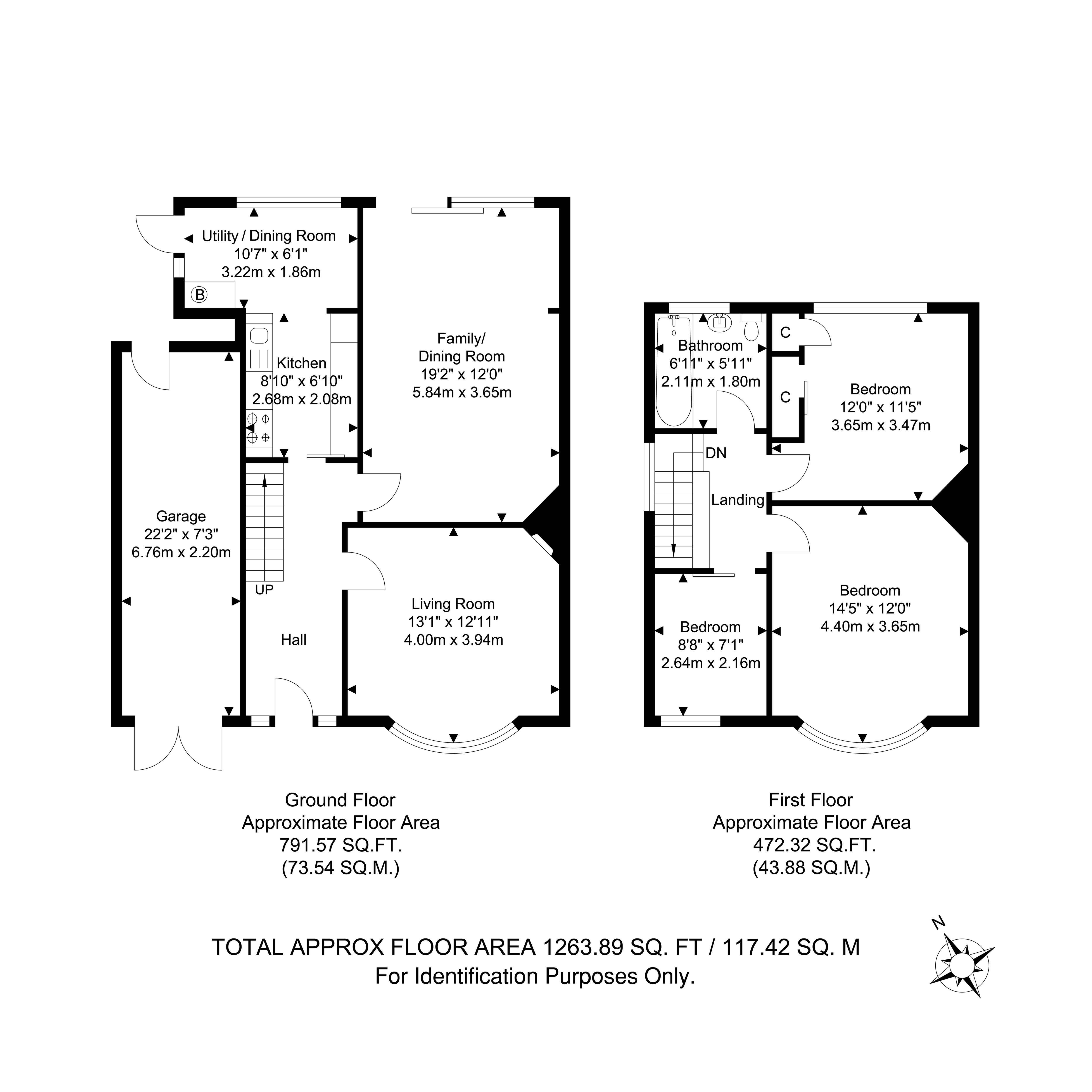 Total Internal Area approx: 1,263.89. sq ft (117.42 sq m). EPC D58