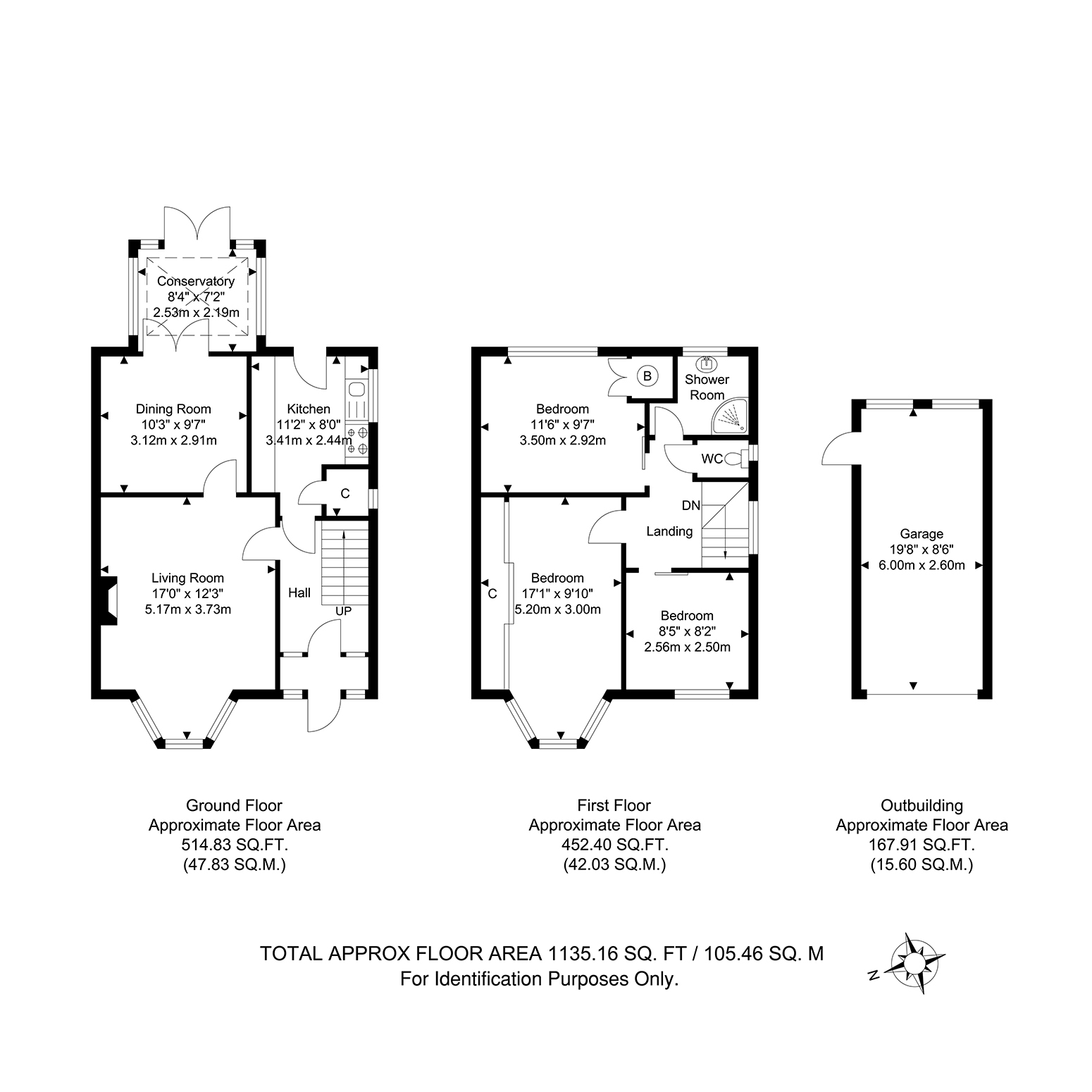 Further benefits include double glazing, garage, 50ft (approx) rear garden, and off street parking. Total Internal Area approx: 1,135.16 sq ft (105.46 sq m). CHAIN FREE