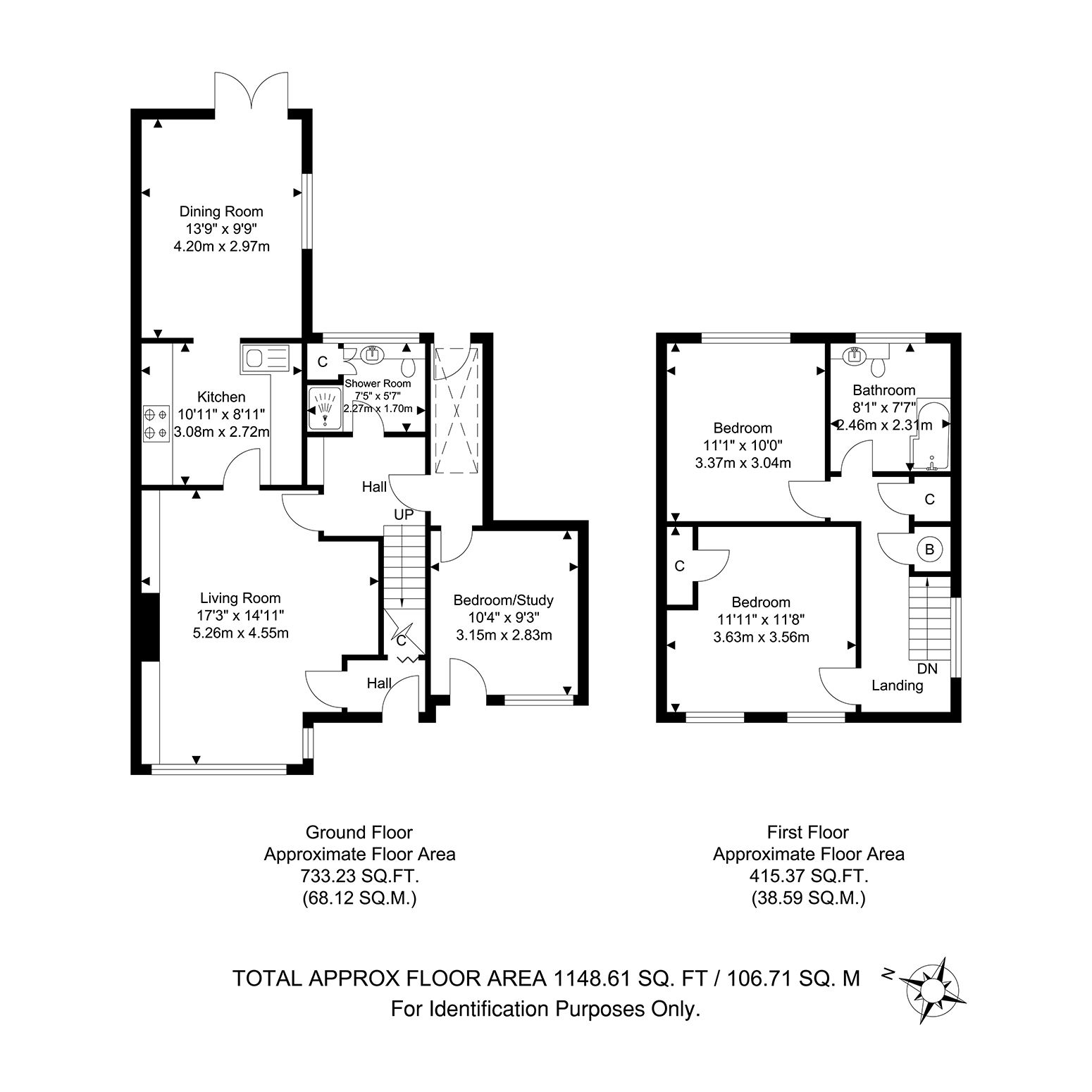 Total Internal Area approx: 1,148.61 sq ft (106.71 sq m).