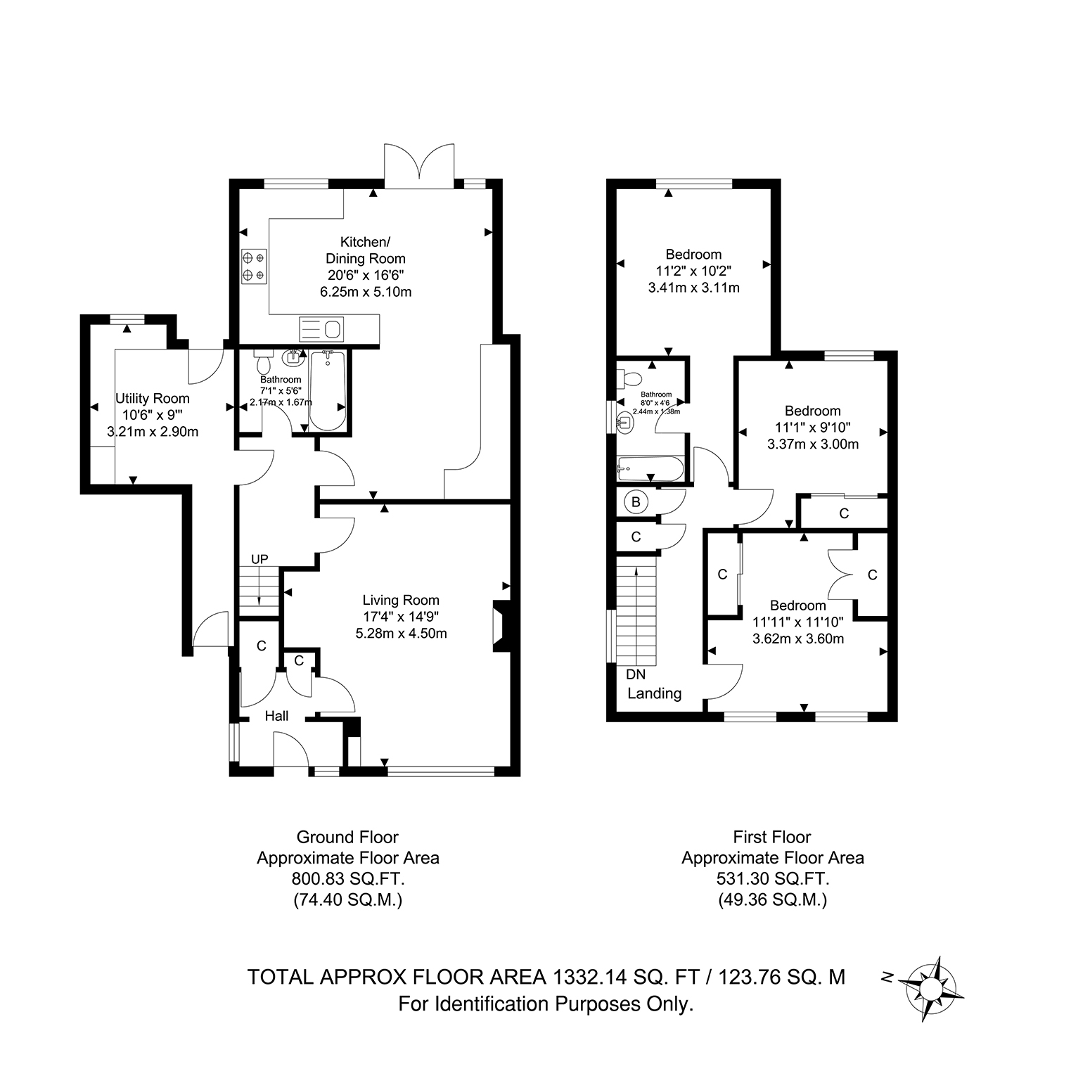 Total Internal Area approx: 1,332.14 sq ft (123.76 sq m).