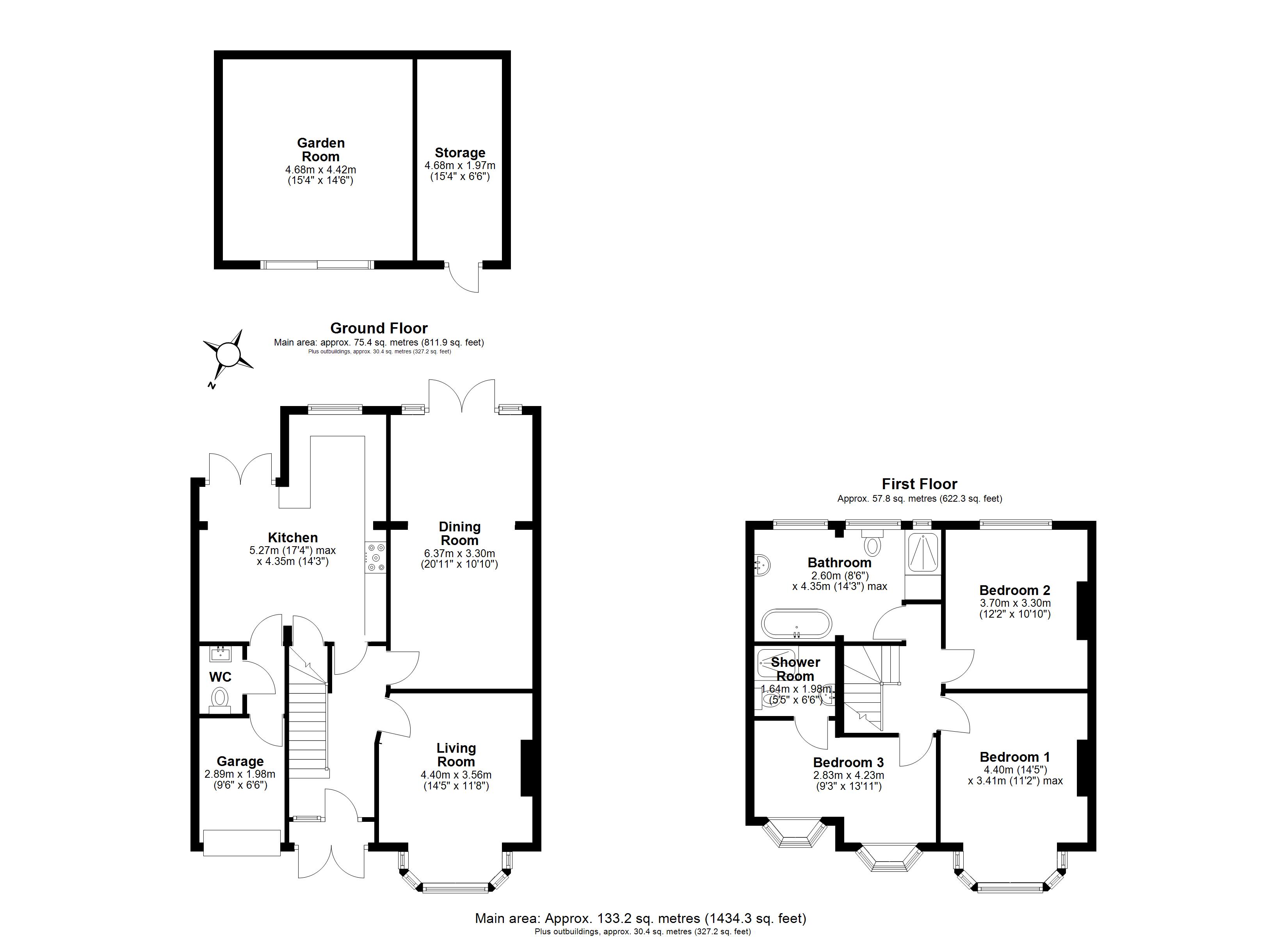 Total Internal Area approx: 1,434.30 sq ft (133.20 sq m).