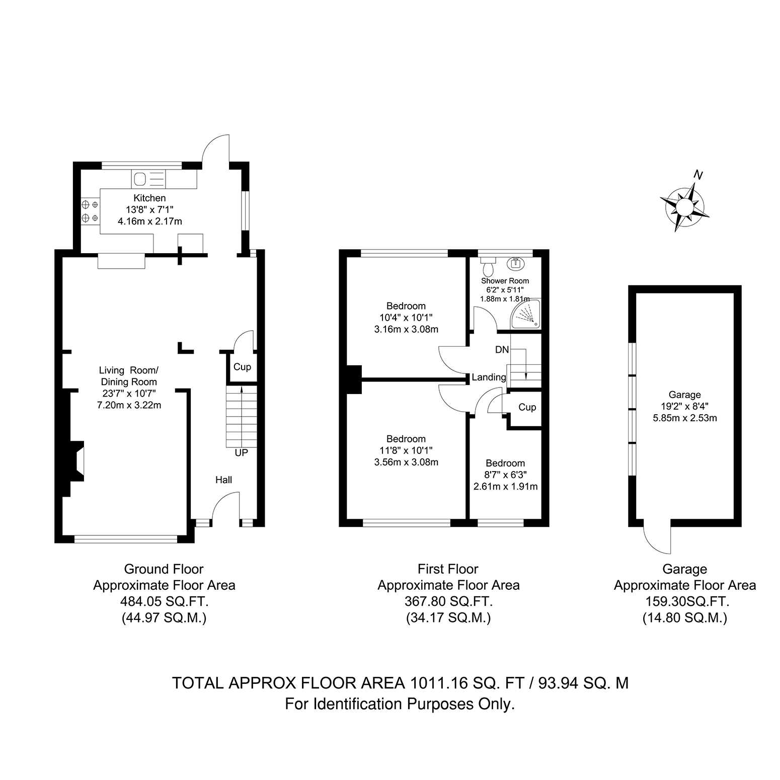 Total Internal Area approx: 1,011.16 sq ft (93.94 sq m)