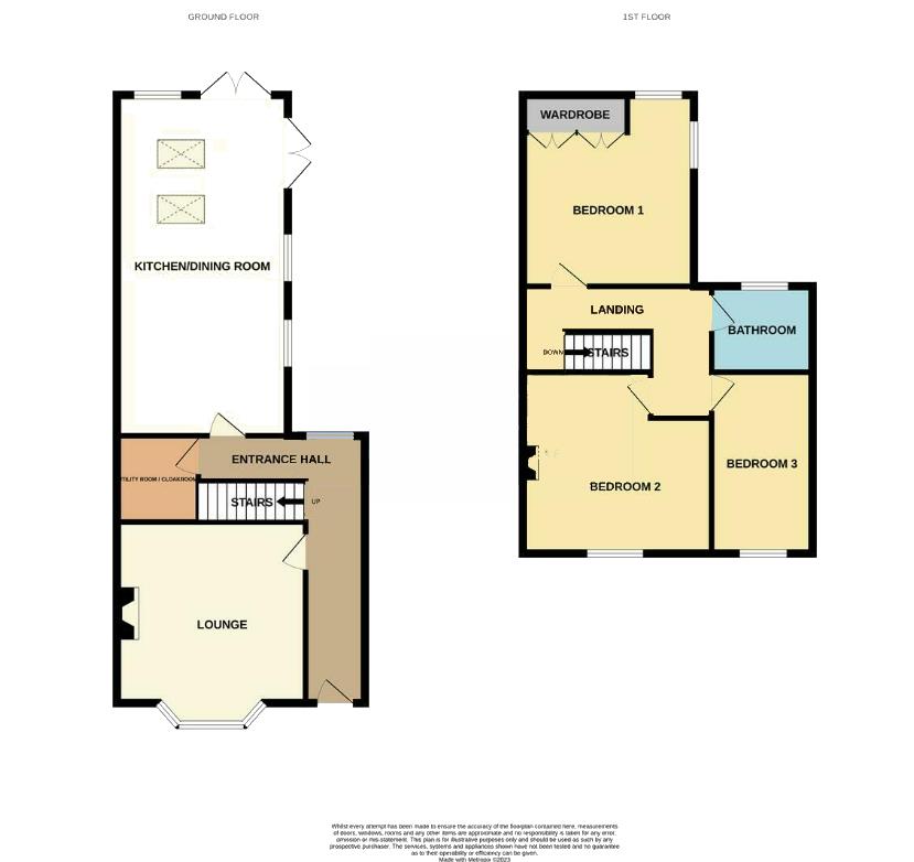 Located in the ever-popular village of Wollaston, this charming three-bedroom Victorian end-of-terrace home blends period character with modern touches. The ground floor welcomes you with a spacious hallway featuring a beautiful stained-glass side window, leading to a cosy lounge with open fireplace and bay window dressed with fitted shutter blinds. A handy utility cloakroom adds convenience, while the impressive open-plan kitchen/dining room boasts a vaulted ceiling and two remote-controlled skylights, creating a bright and airy hub for everyday living or entertaining.