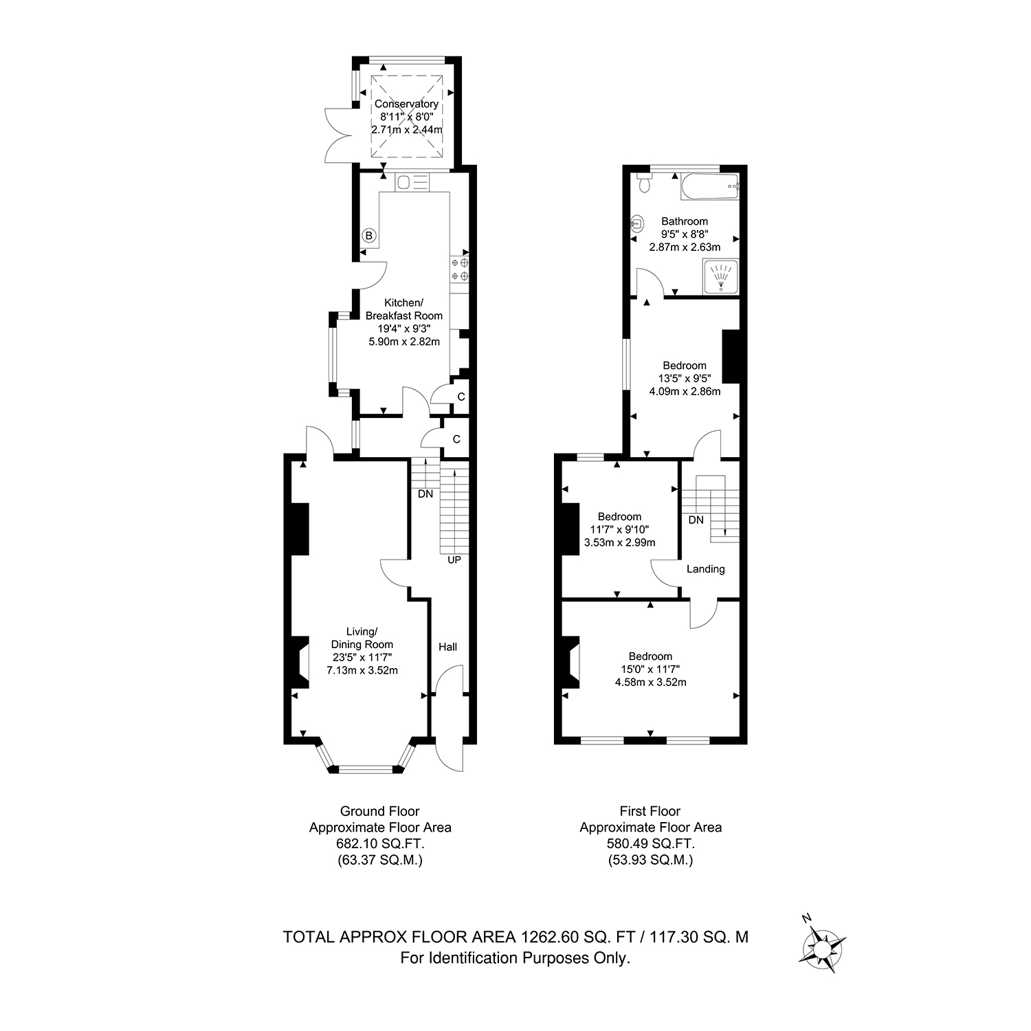 Further benefits include double glazing, gas central heating, and 30ft (approx) garden. Total Internal Area approx: 1,262.60 sq ft (117.30 sq m).
