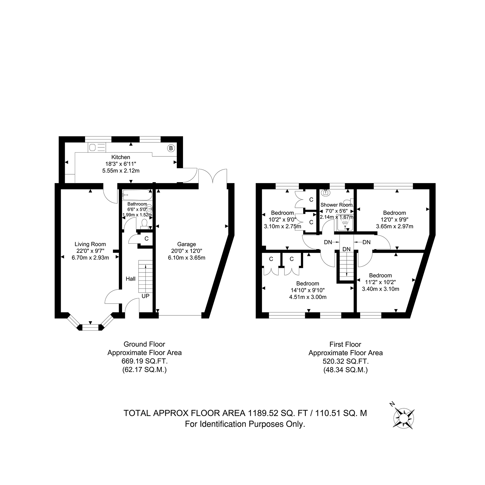 Total Internal Area approx: 1,184.00 sq ft (110.00 sq m).
