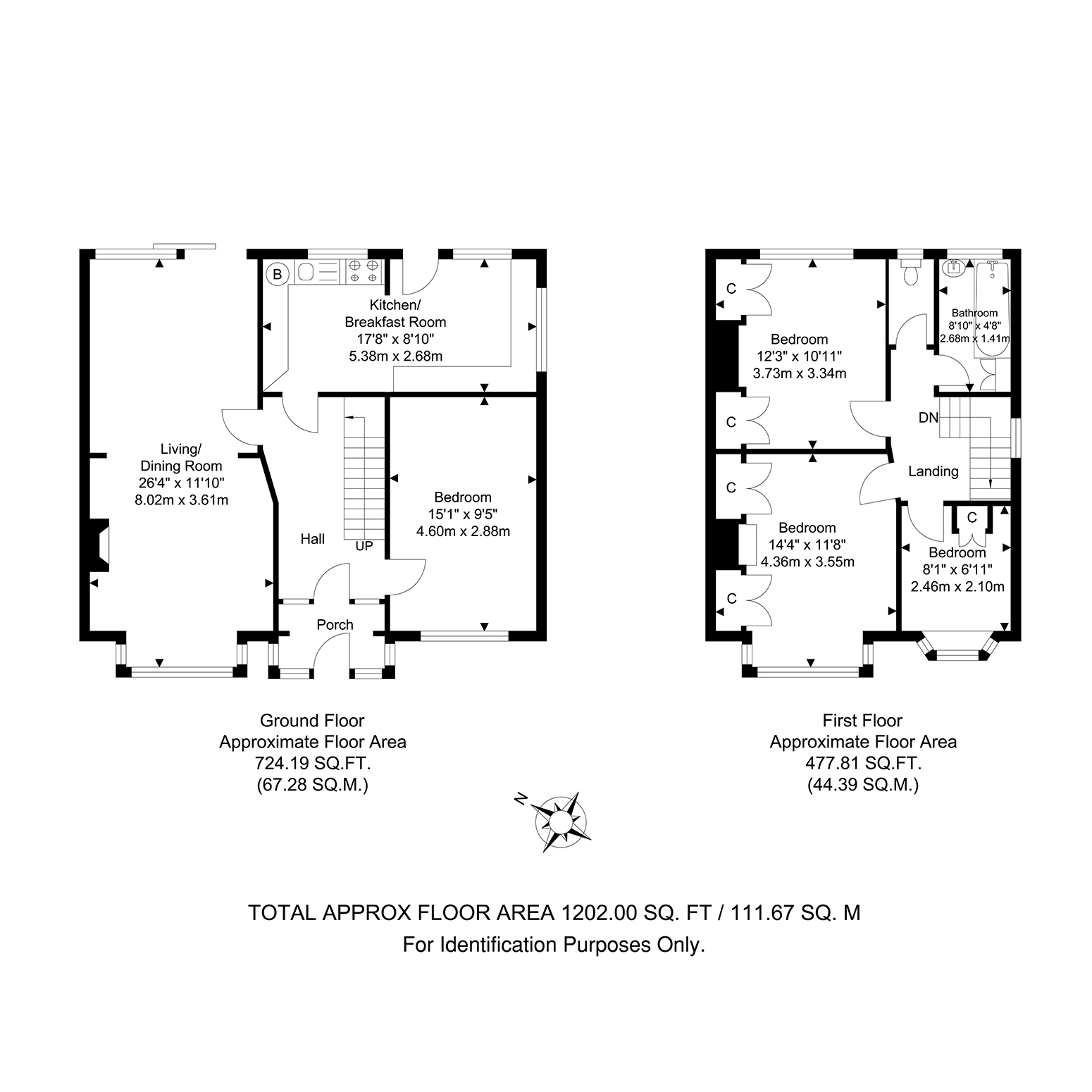 Total Internal Area approx: 1,202.00 sq ft (111.67 sq m)