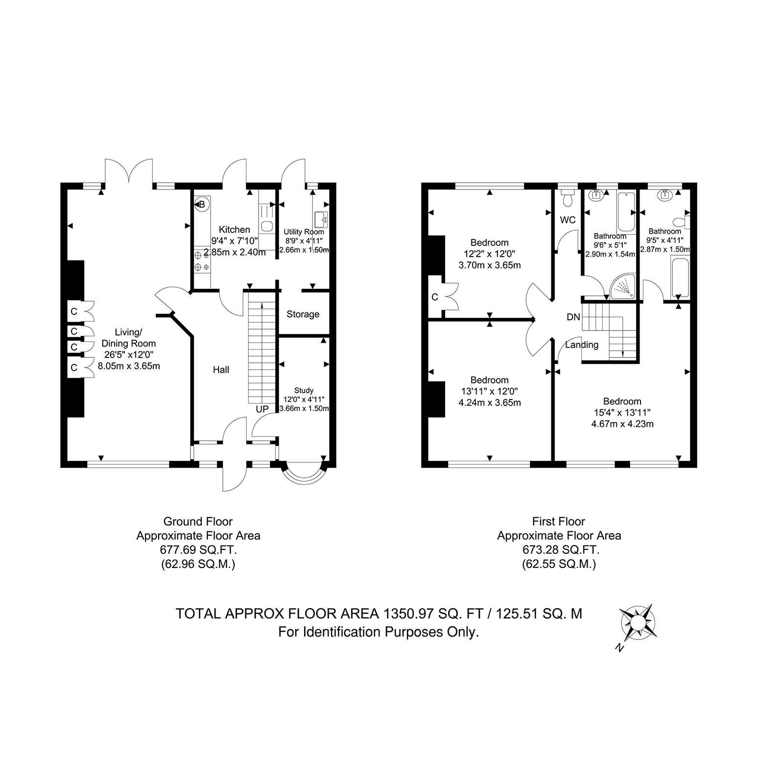 Total Internal Area approx: 1,350.97 sq ft (125.51 sq m). EPC Rating D63