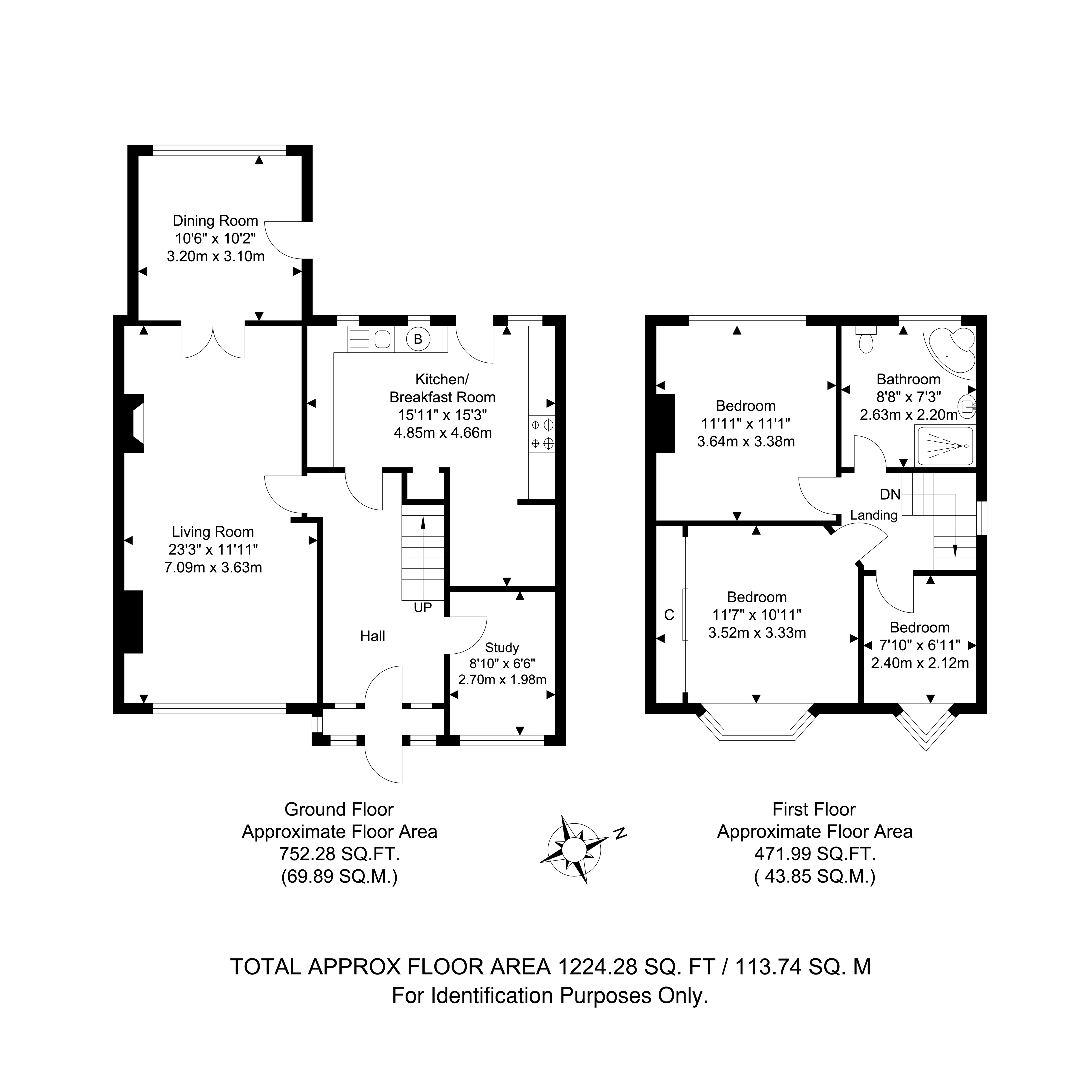Total Internal Area approx: 1,224.28 sq ft (113.74 sq m). EPC D58.