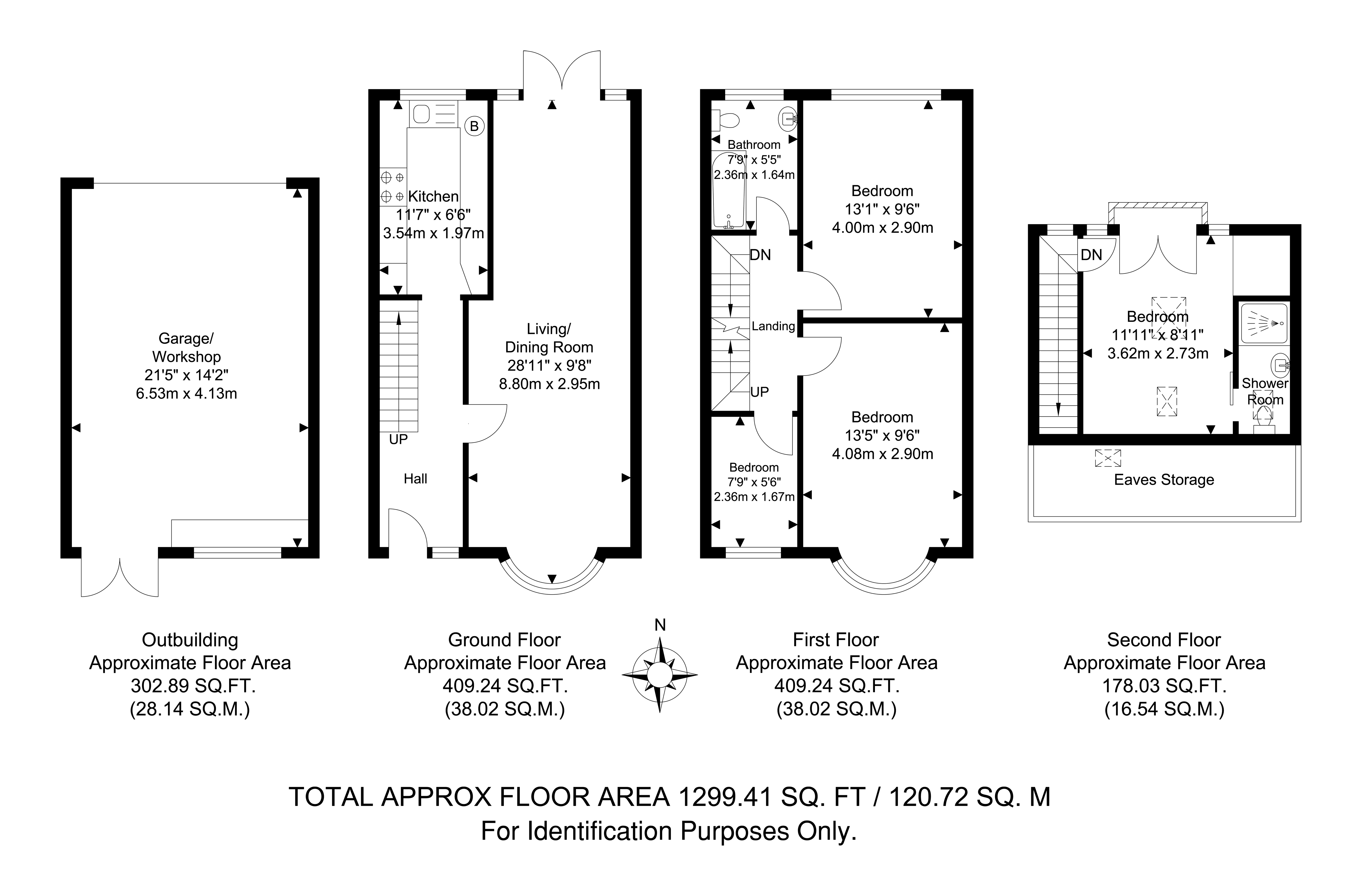 Further benefits include gas central heating, double garage, 55ft (approx) south-facing garden, and off street parking for 2 cars. Total Internal Area approx: 1,299.41 sq ft (120.72 sq m).