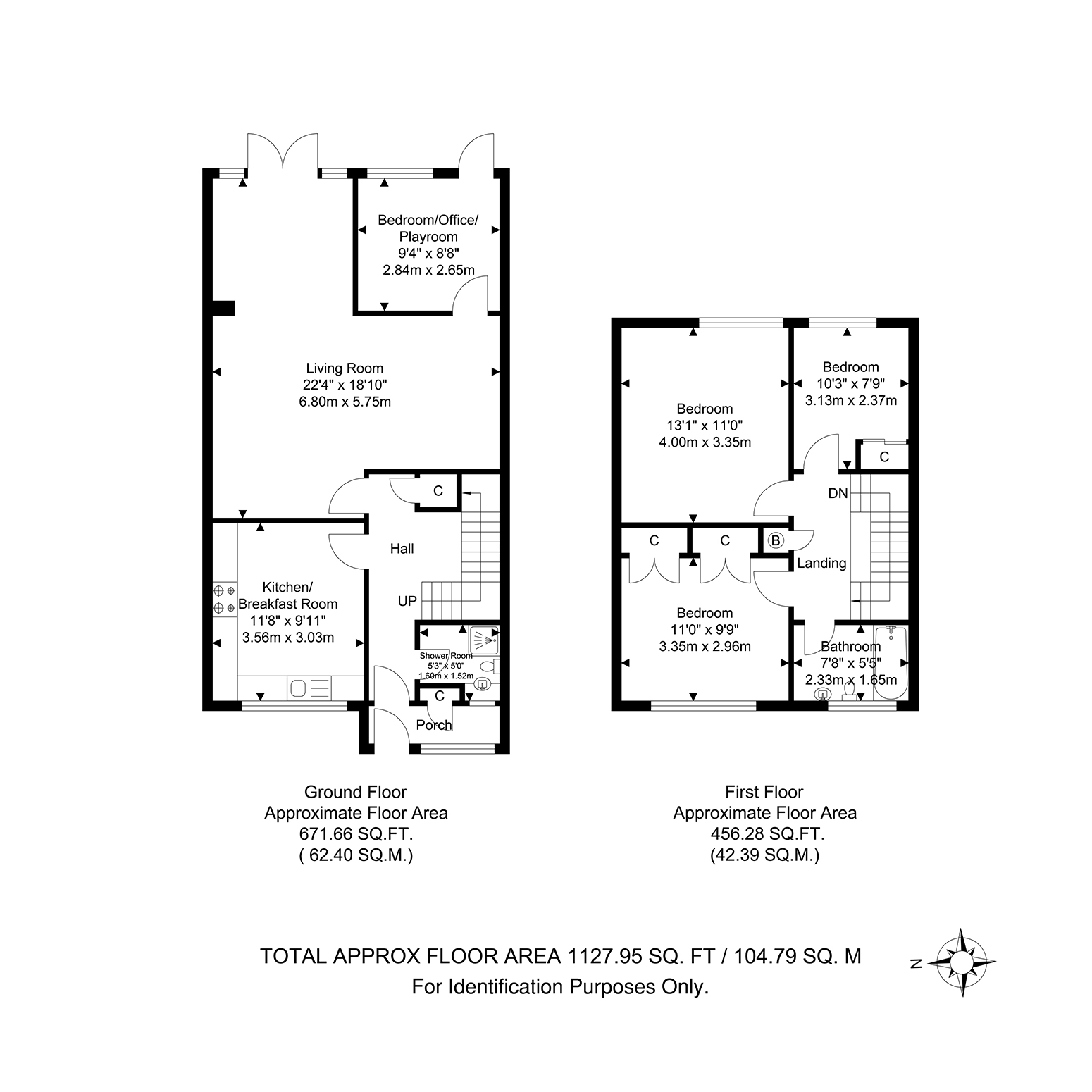 Further benefits include double glazing, gas central heating, and 500 sq ft (approx) rear garden. Total Internal Area approx: 1,127.95 sq ft (104.79 sq m). CHAIN FREE!!
