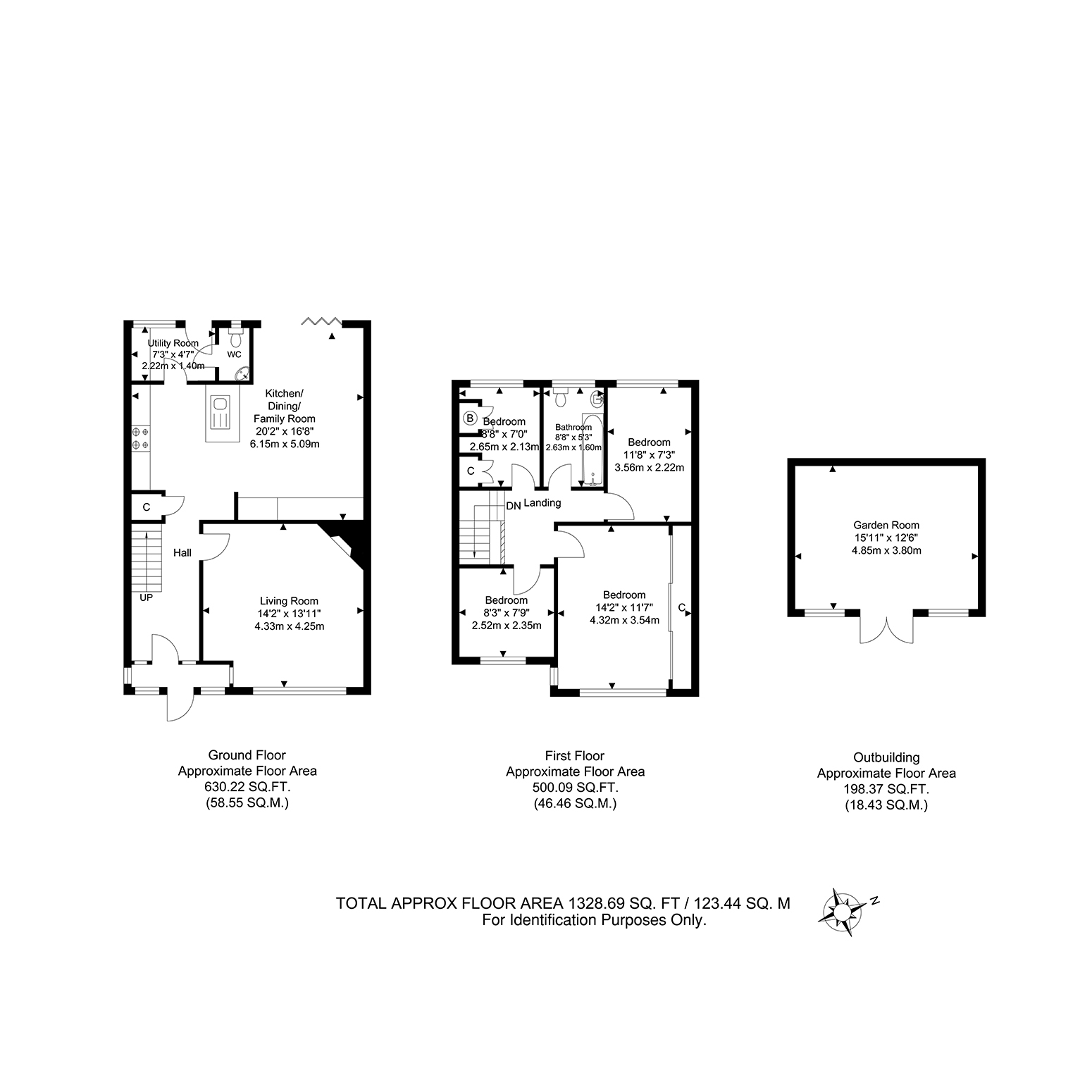 Further benefits include gas central heating, summerhouse, and 50ft (approx) south-west facing garden. Total Internal Area approx: 1,328.69 sq ft (123.44 sq m).