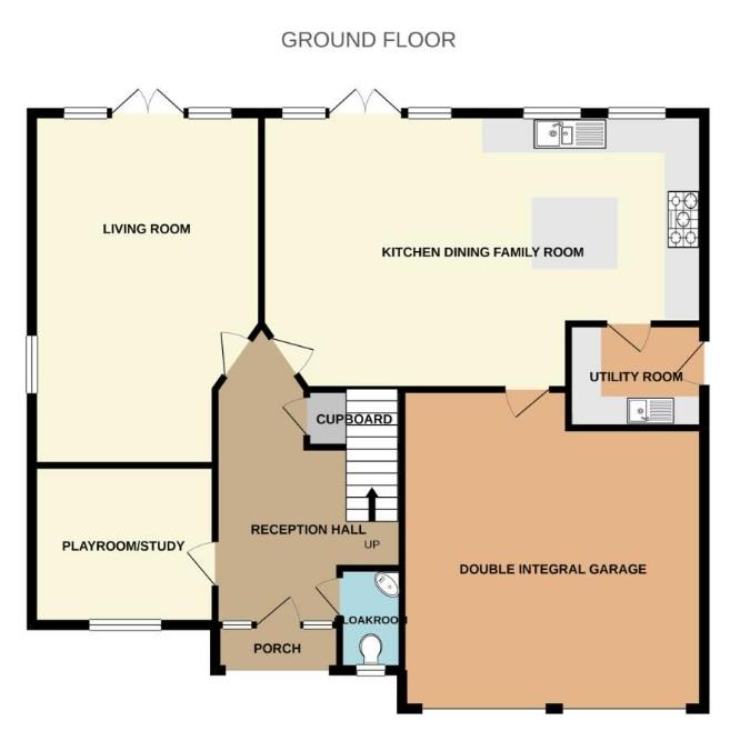 From the entrance hall you will also find the large living room, again with french doors leading out into the rear garden, an additional reception room to the front of the Property, which can be used for a variety of reasons such as an office, playroom, or formal dining space. To complete the downstairs accommodation, you will find a cloakroom with a low level flush WC and pedestal wash hand basin, and understairs storage.