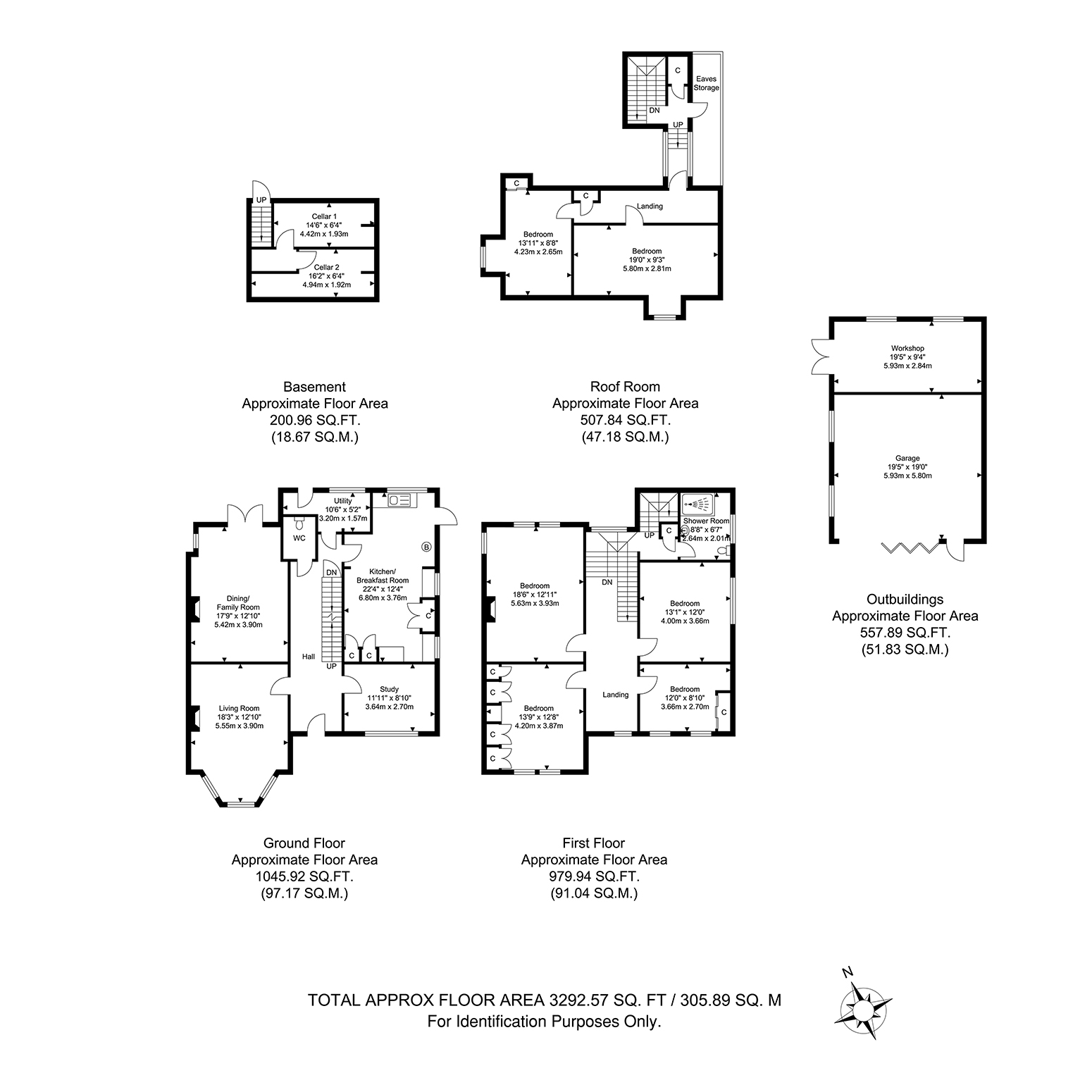 Further benefits include original Victorian features, 3,600 sq ft (approx) rear garden, double garage, workshop, and off street parking for up to 6 cars. Total Internal Area approx: 3,292.57 sq ft (305.89 sq m). CHAIN FREE