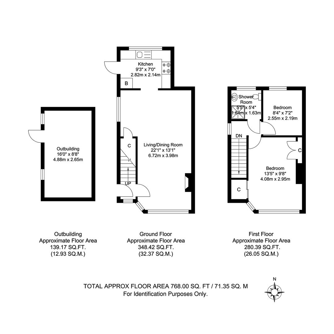 Further benefits include off street parking for 2 cars, double glazing, and gas central heating. Total Internal Area approx: 768.00 sq ft (71.35 sq m).